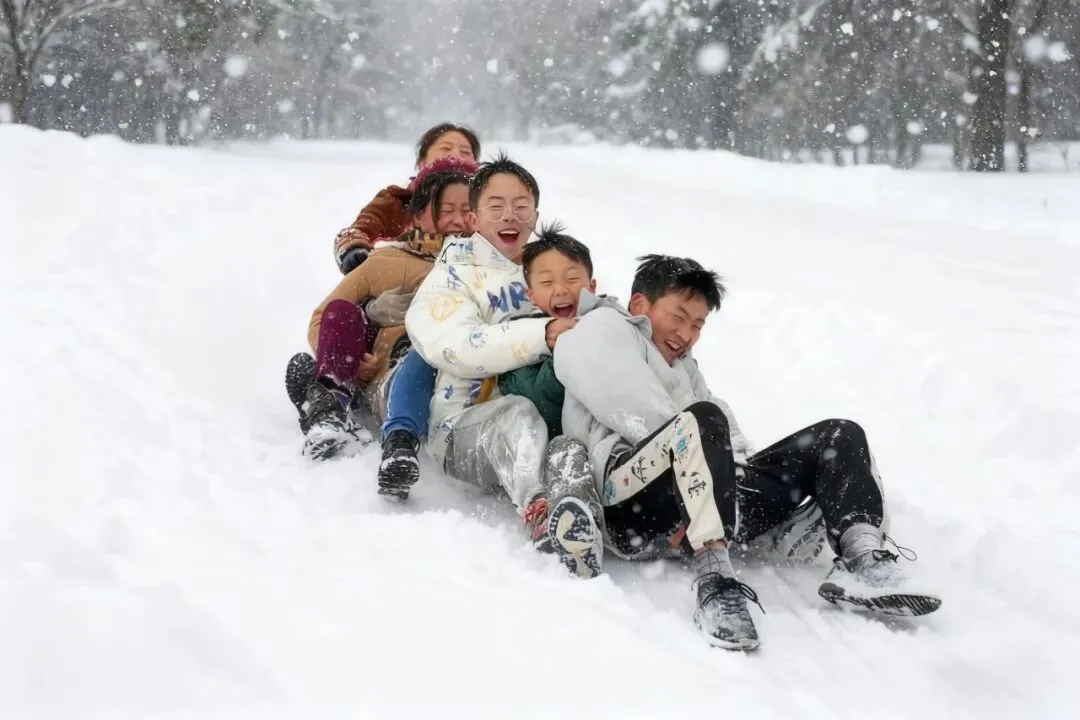 放学的路上,路上的积雪已经结冰,表层锃亮,大家去打着出溜滑,往回走的途中,总少不了稀里哗啦摔倒的,一摔倒就是一串。