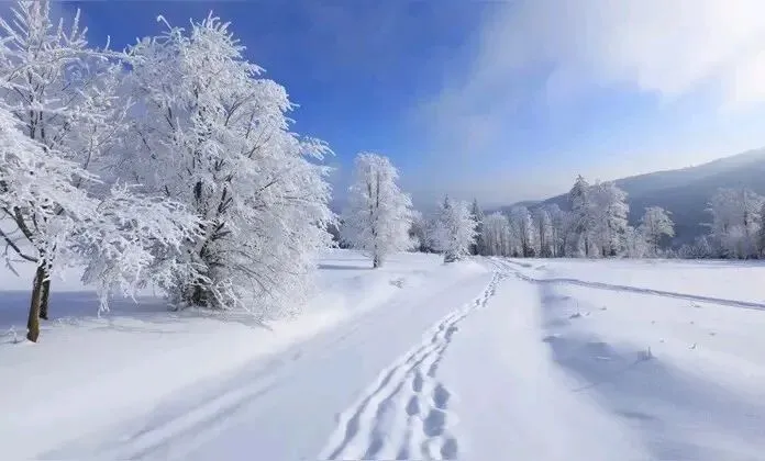 出门一片白茫茫,一脚踩下去,雪一直没过膝盖窝。那一天早晨,是我爸拿着铁锹在前边铲出一条雪路,我在后边慢慢走。