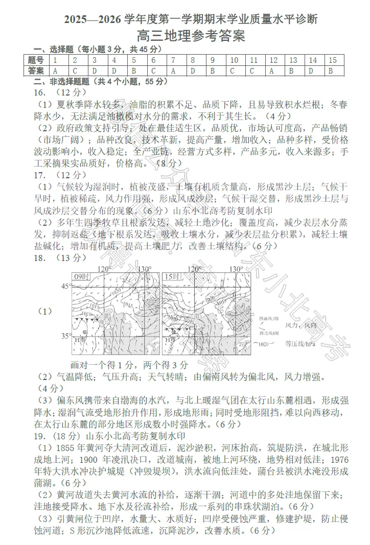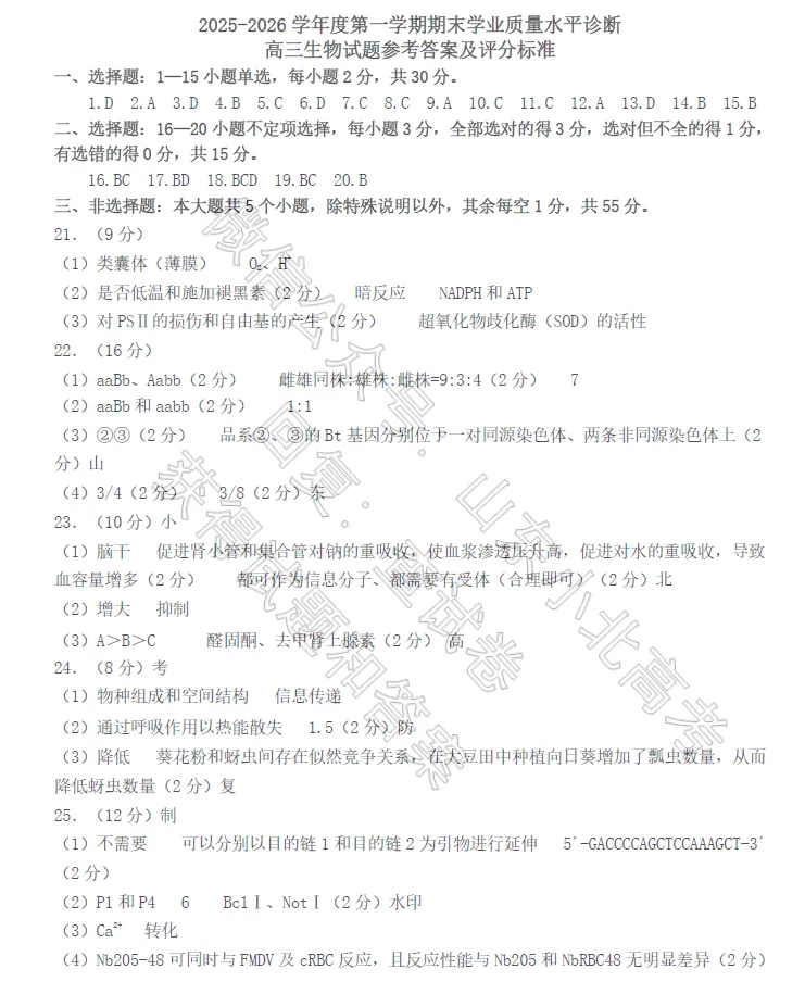 2026泰安高三期末划线情况【附赋分情况和一分一段表】