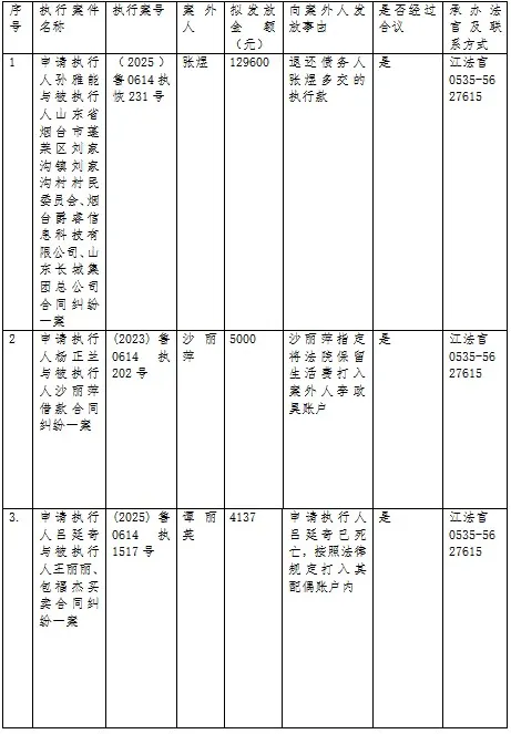 山东省烟台市蓬莱区人民法院关于向案外人发放执行案款的公示 (2026年第4期)