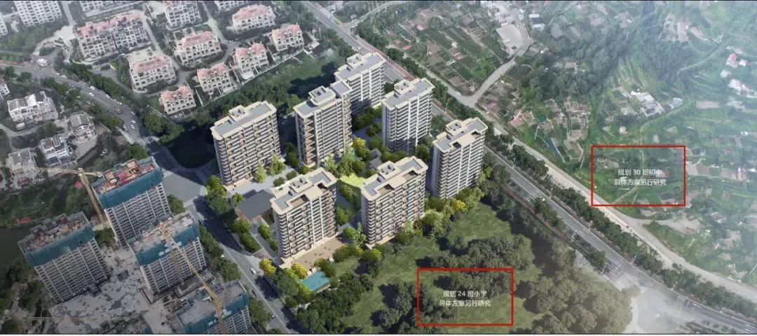 君一雲启南侧规划了一所24班的小学,东南侧还要建一所30班的初中。