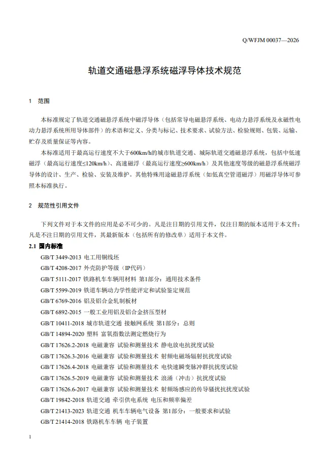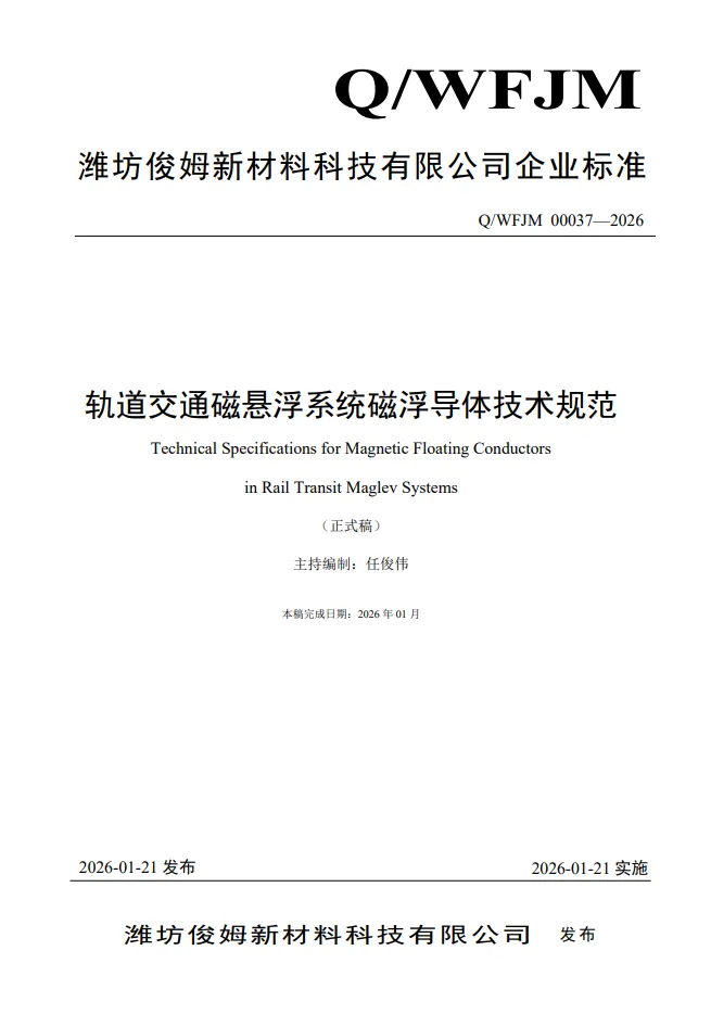 >中国中车-青岛动车新材料基地旗下团队公司-最新企业标准-《轨道交通磁悬浮系统磁浮导体技术规范》(已17轮审核-过审公布)