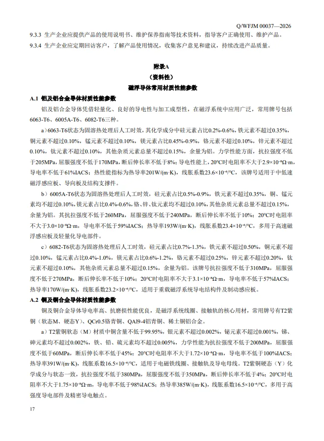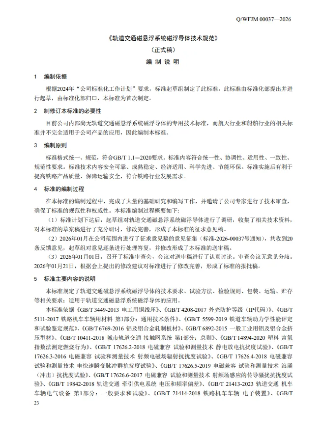 中国中车-青岛动车新材料基地旗下团队公司-最新企业标准-《轨道交通磁悬浮系统磁浮导体技术规范》(已17轮审核-过审公布)