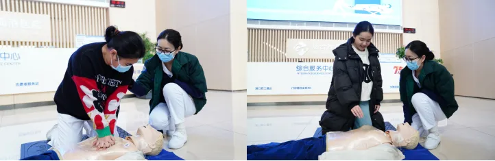 急诊科专业医护人员组成的培训团队,通过理论讲解与实操演示相结合的方式,向现场市民系统传授了心肺复苏(CPR)和气道异物梗阻急救(海姆立克法)两项关键急救技能。