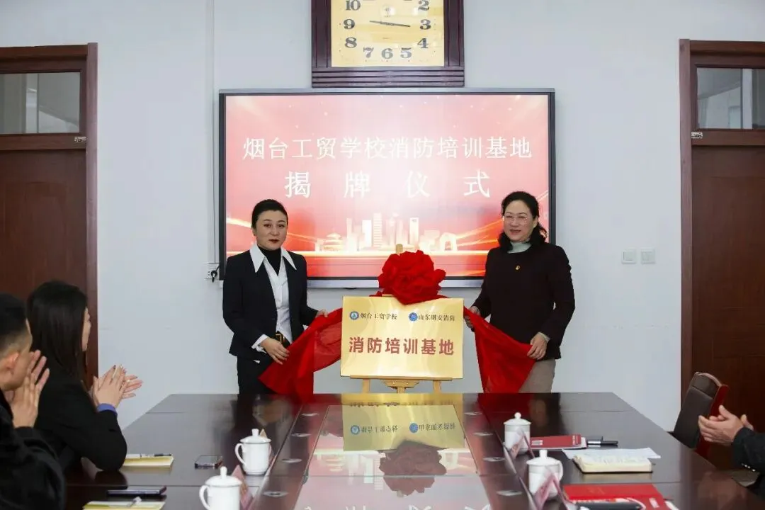 近日,烟台工贸学校举行“消防培训基地”成立暨揭牌仪式。学校党委书记曹云芝、校长闫涛、副校长林力朴,山东明安消防技术服务有限公司董事长姜筱函、总经理李海新等双方代表共同出席。仪式由副校长林力朴主持。