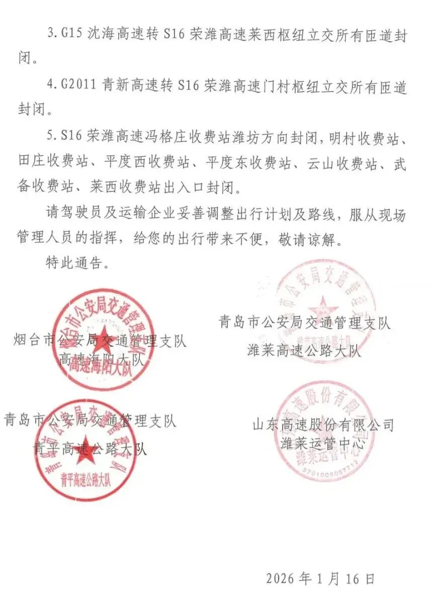 S16荣潍高速青岛、烟台部分路段