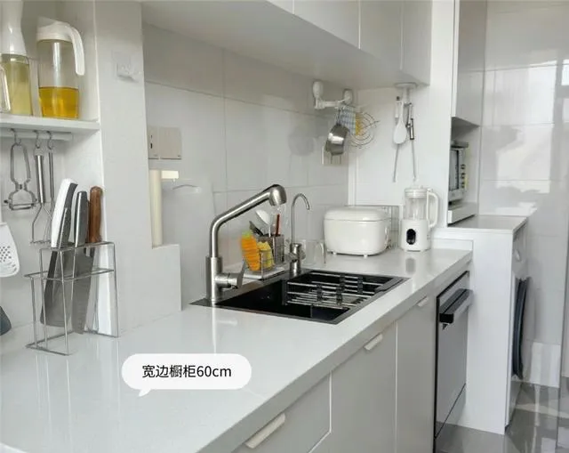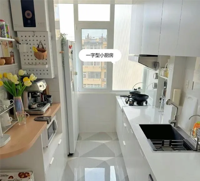 我干这行这么多年,见过太多人把小厨房装得乱七八糟的,不是动线不合理,就是收纳没做好,可这位姑娘不一样,她把"一字型"厨房的精髓算是吃透了,每一寸空间都用得恰到好处,真的是值得咱们好好学学。