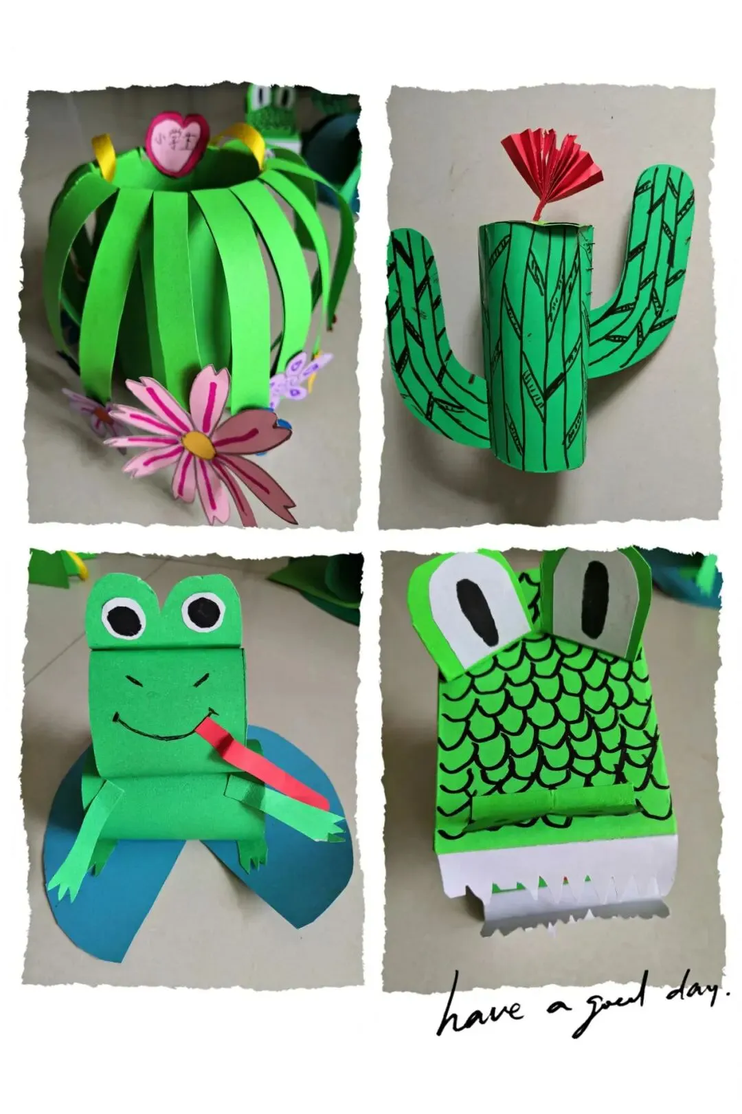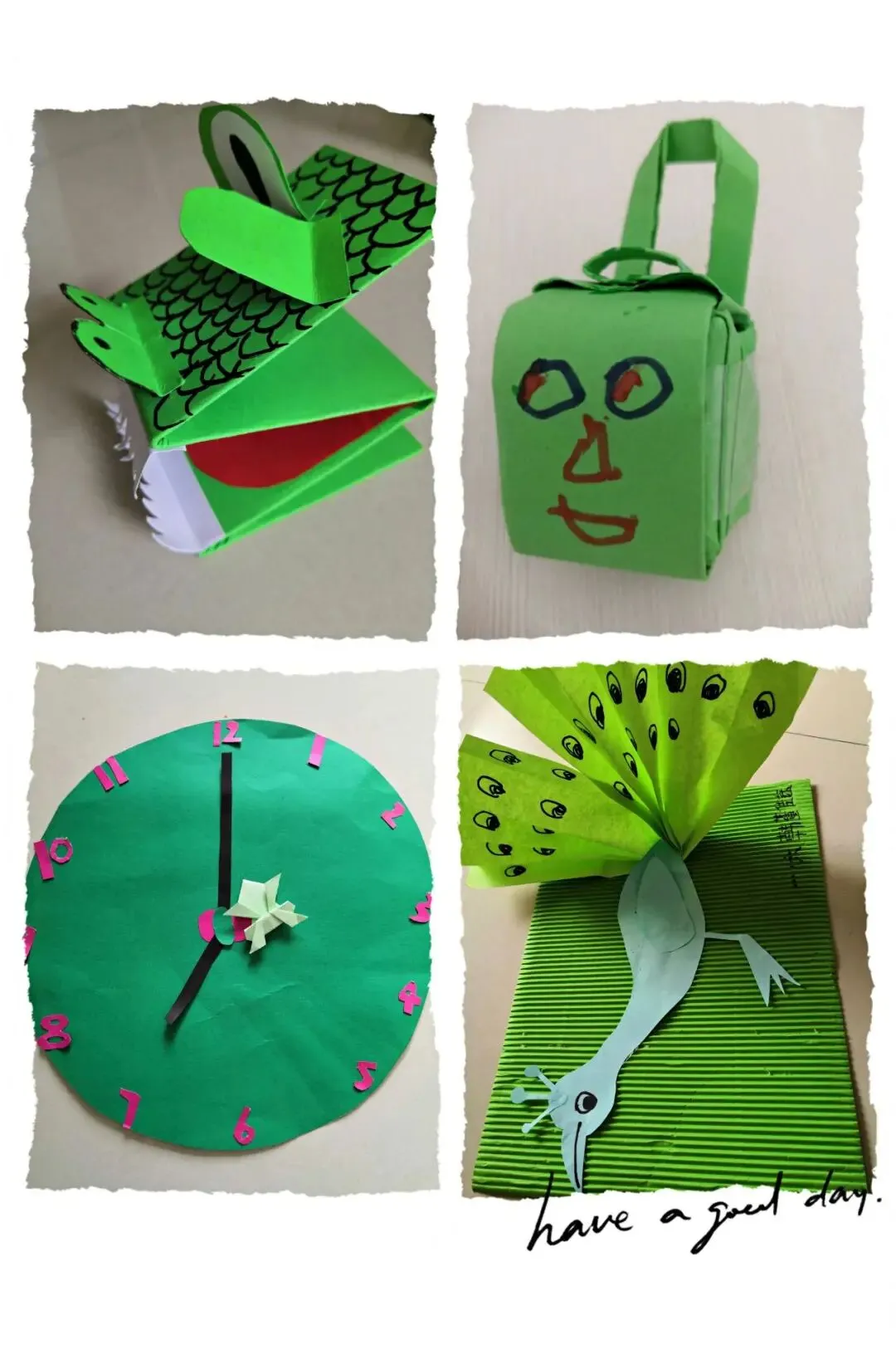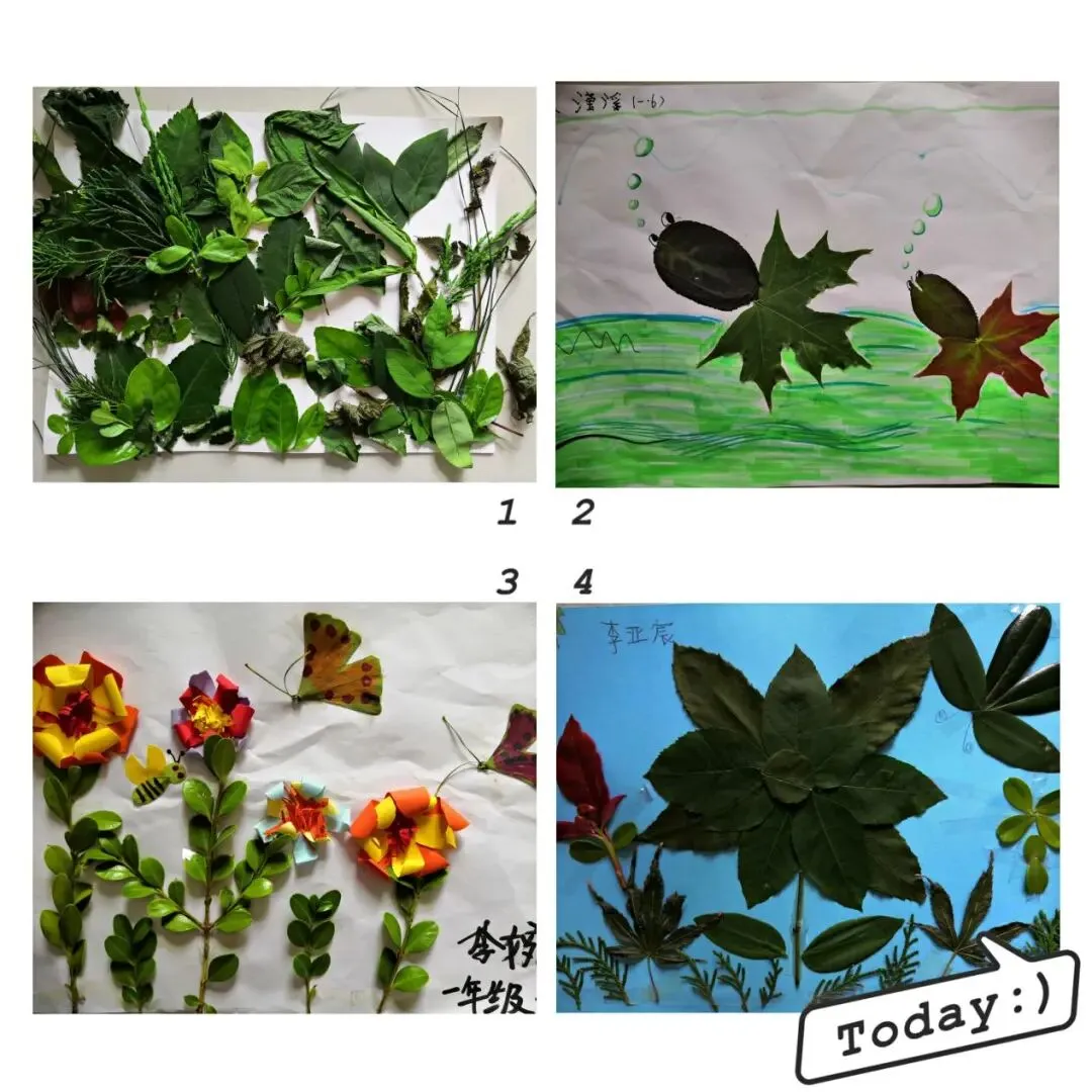 绿是宁静的色彩,绿是生命的依托,绿是健康的保证,小豆豆们被绿色之美深深吸引。“纸上得来终觉浅,绝知此事要躬行”,同学们纷纷用手中的彩纸,心爱的叶子,表达对绿的热爱,对美的向往。