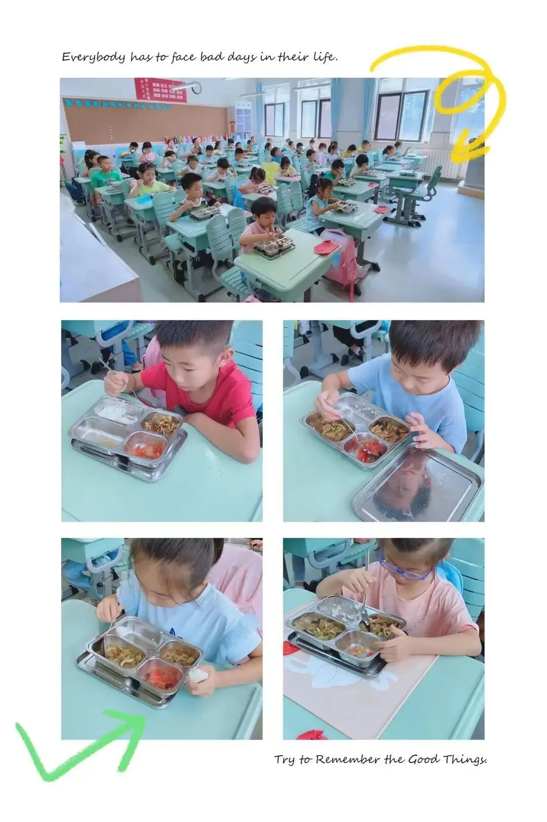 新的学期,新的开始,新的希望,新的梦想,希望同学们尽快适应小学生活,就像一一颗种子,就像校园里的那一抹绿,充满生机,茁壮成长!