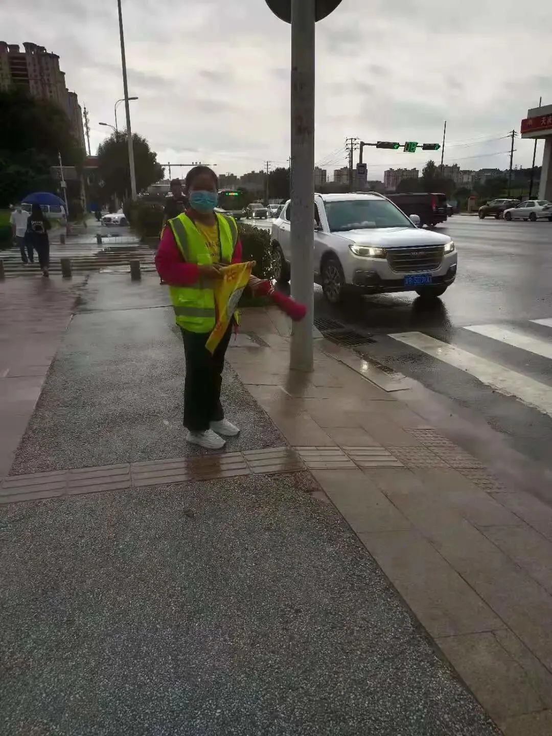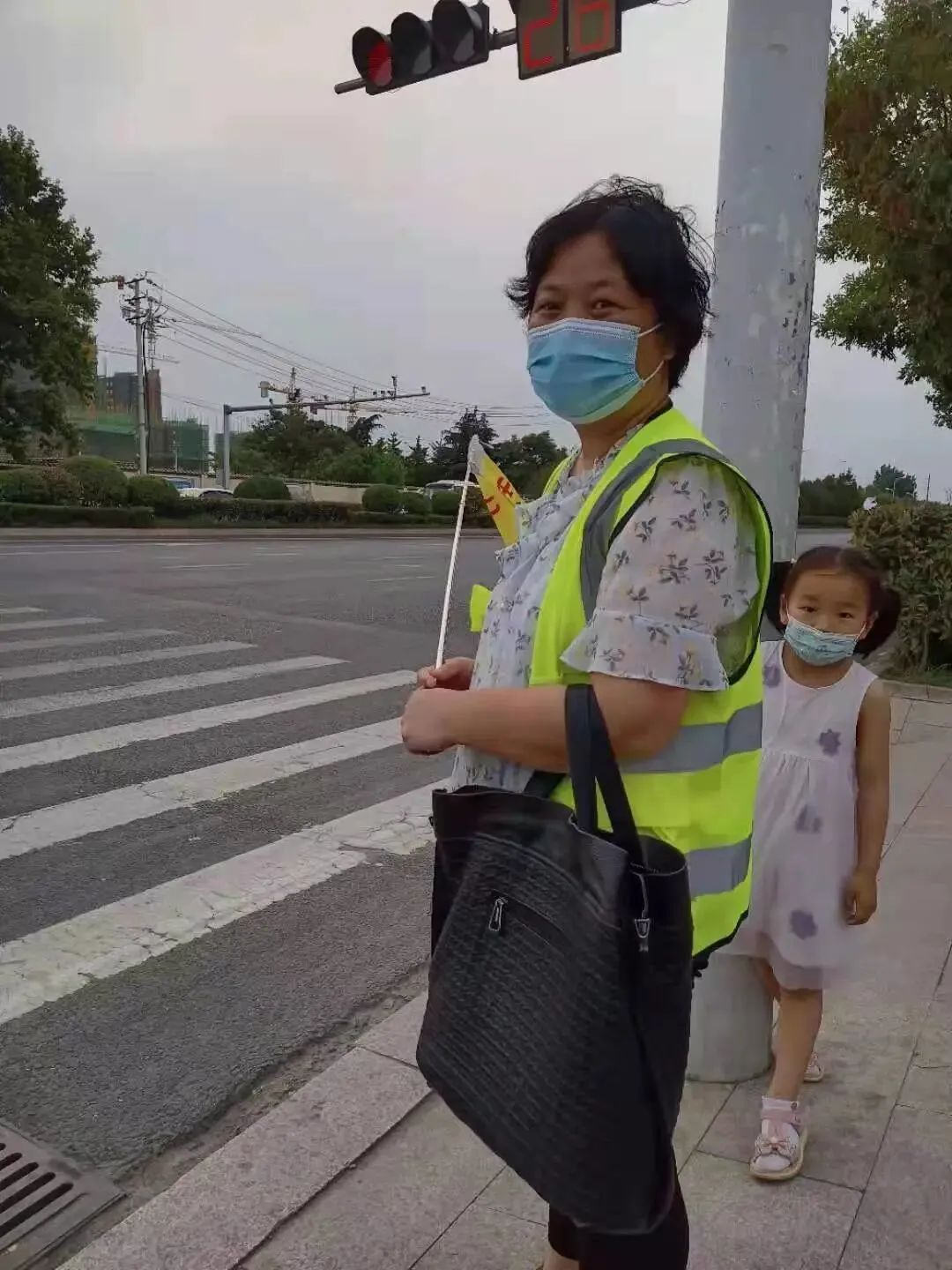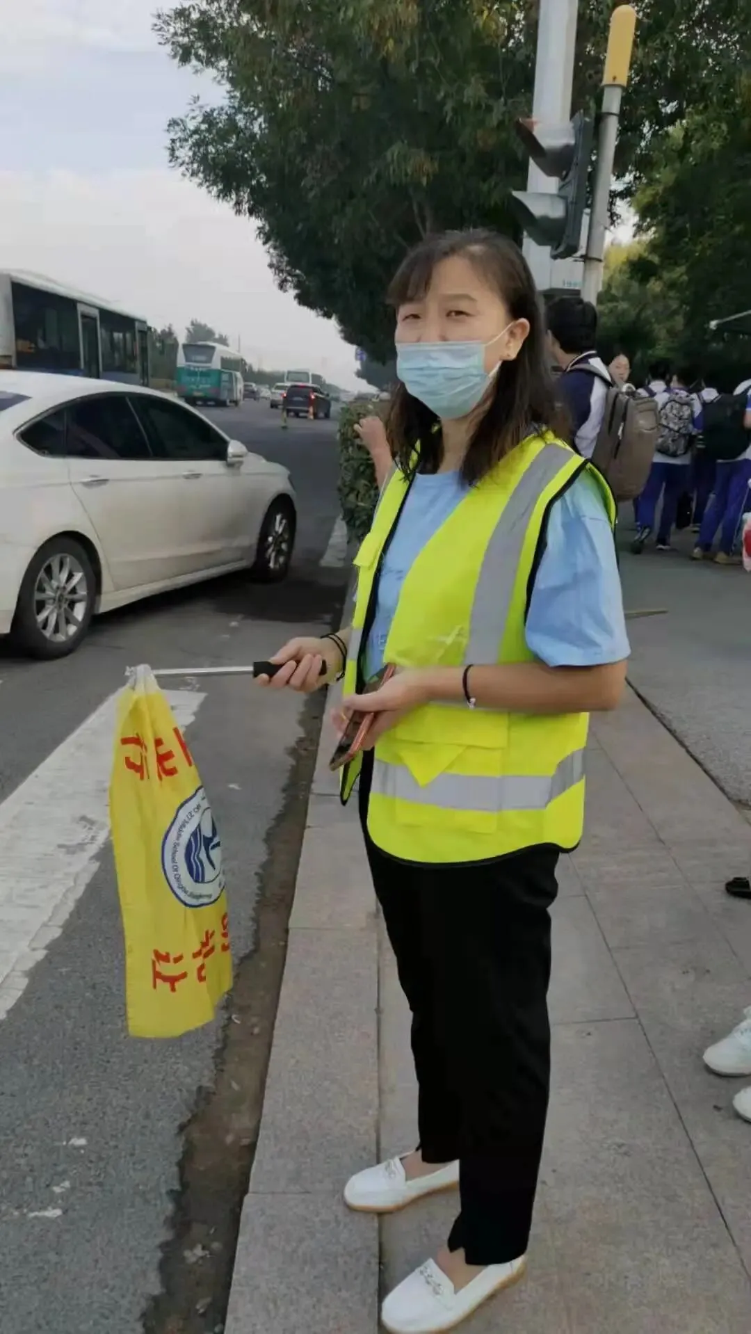 从开学第一天起,家长委员会的热心家长们就已经协调好了护航工作,并准时出现在校门口的红绿灯两边。依然是浅绿色的服装,手执写有“安全出行、文明礼让”的三角旗,指导着学生在绿灯时安全通过马路。这些可亲可敬的二十七中的学生家长,身体力行地为教育做着自己的贡献。为孩子的健康成长保驾护航。