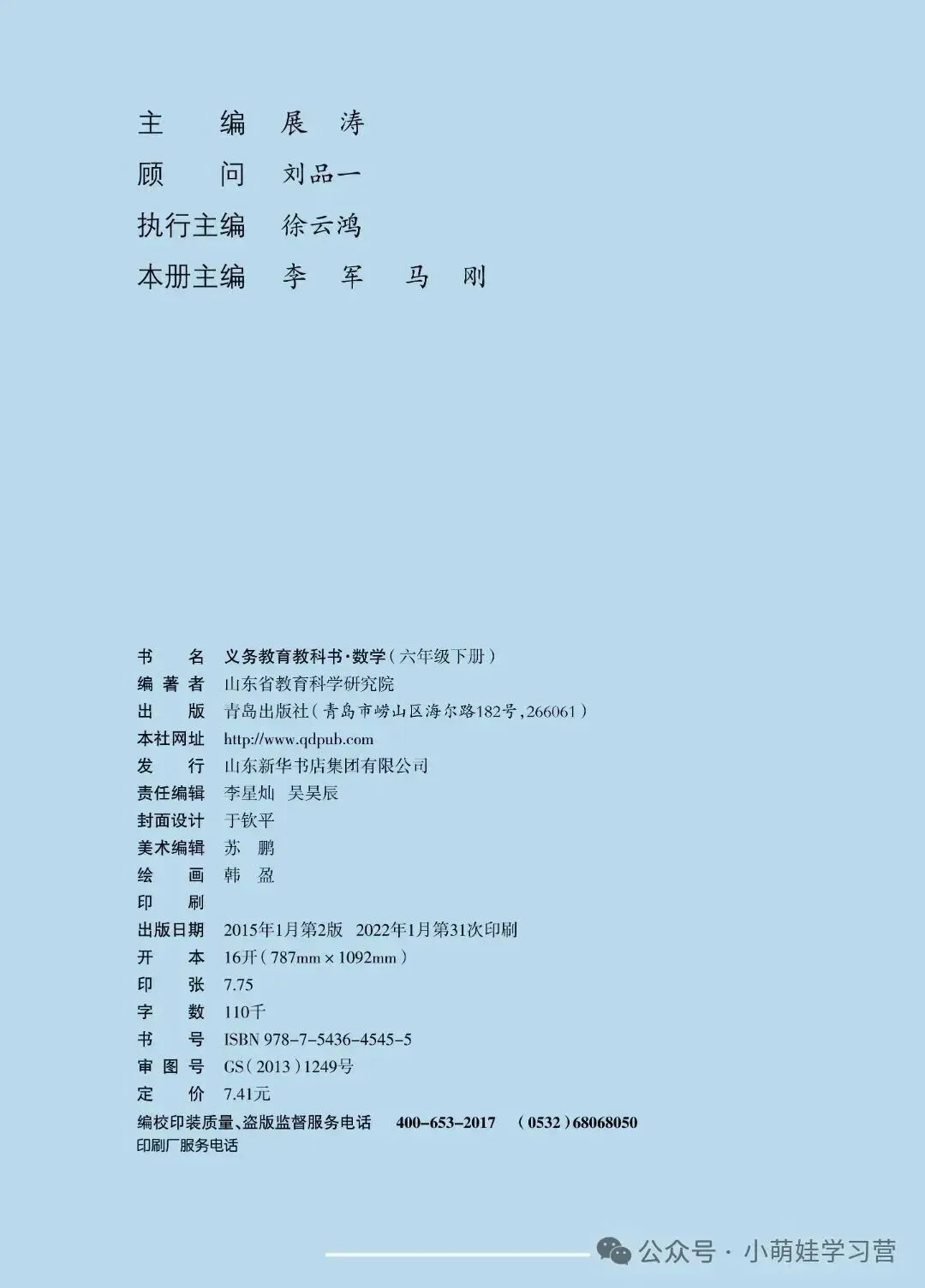 今天给家长们分享的是26春六年级下册数学《电子课本》青岛63版|完整电子版可打印!