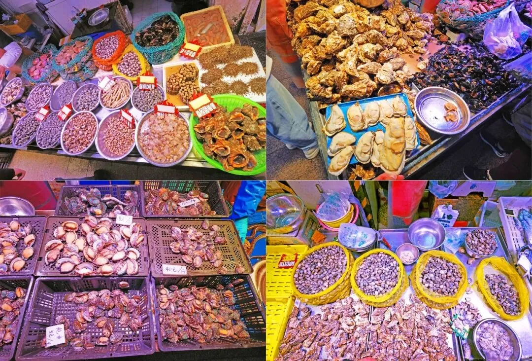 各种小海鲜、嘎啦(蛤蜊)、海蛎子(牡蛎)