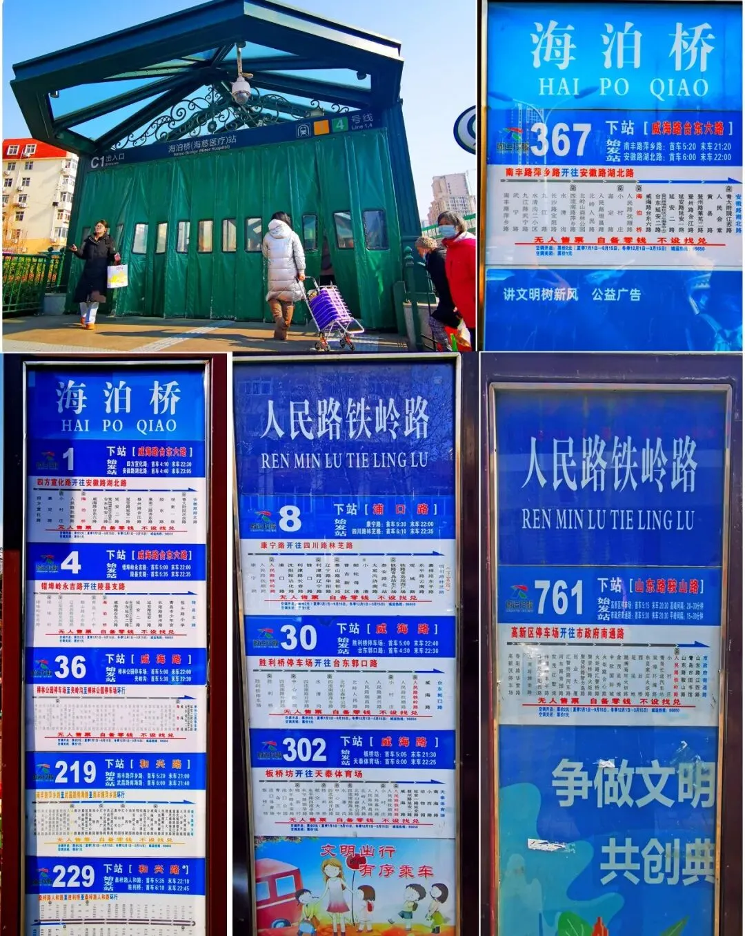 青岛地铁1号、4号线海泊桥(海慈医院)站C1口、A口出站;公交8、30、302、761路人民路铁岭路站下车西行200米,1、4、36、219、229、367路海泊桥站下车北行200米。早市周边人流很大停车紧张,非必要自驾车不推荐(也可停车至海慈医院内或者本溪路海溪市场北侧小停车场内)