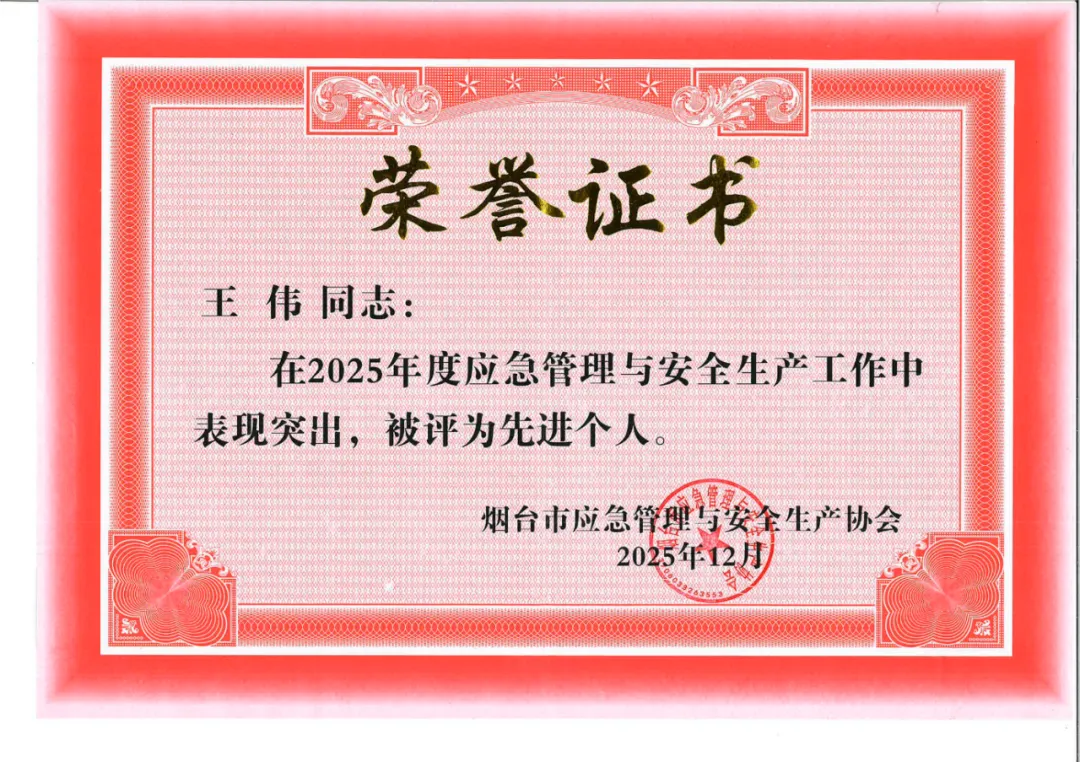 近日,烟台市应急管理与安全生产工作先进单位和先进个人评选结果揭晓,烟台项目部荣获“先进单位”称号,烟台项目员工王伟获评“先进个人”。