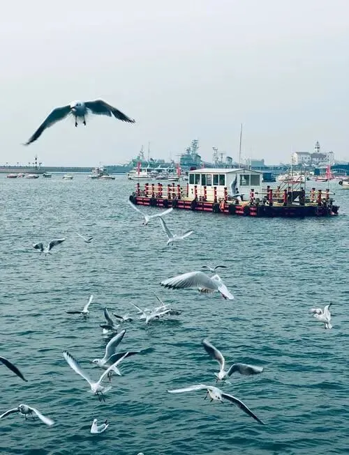 青岛先看海,栈桥一眼到头,风把海鸥吹得稳稳的。