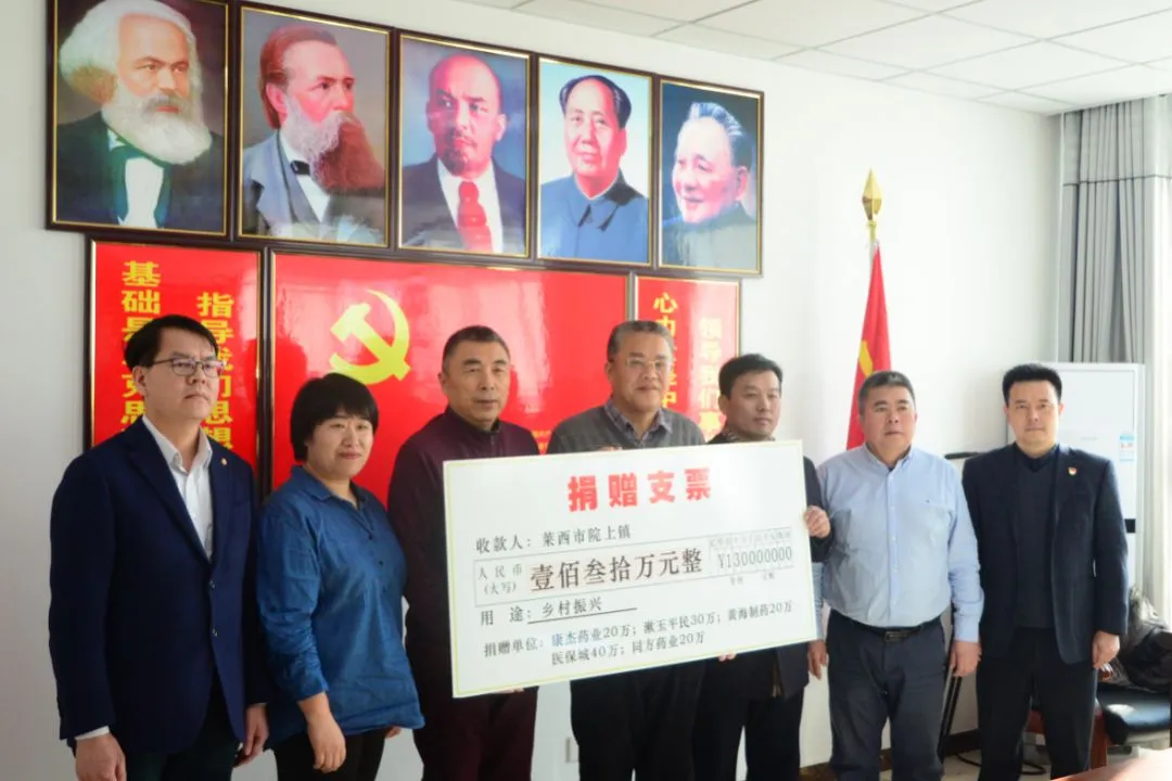 青岛医保城出资40万元,与其他药企共同捐赠130万元,捐赠善款将用于莱西市院上镇乡村振兴活动
