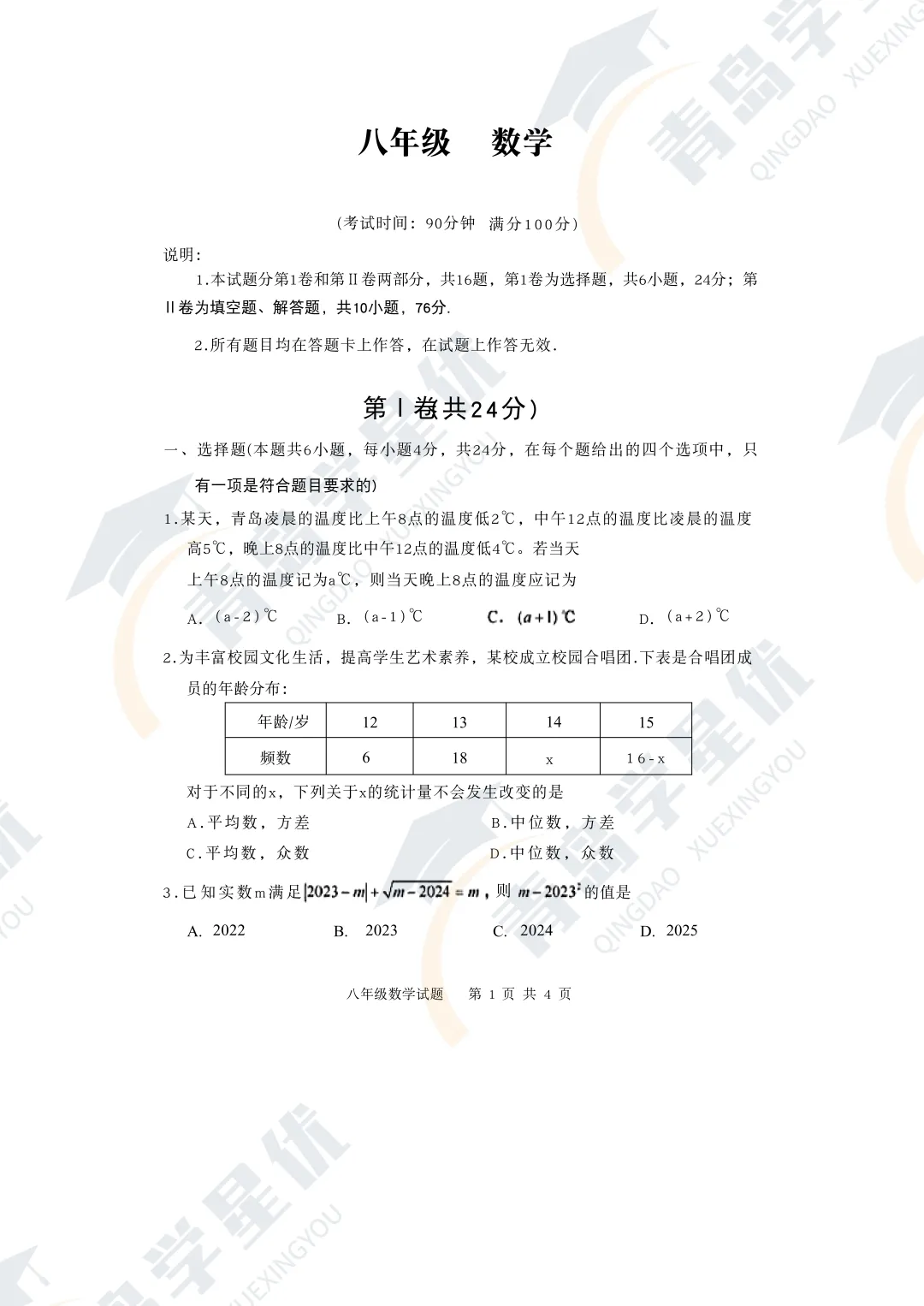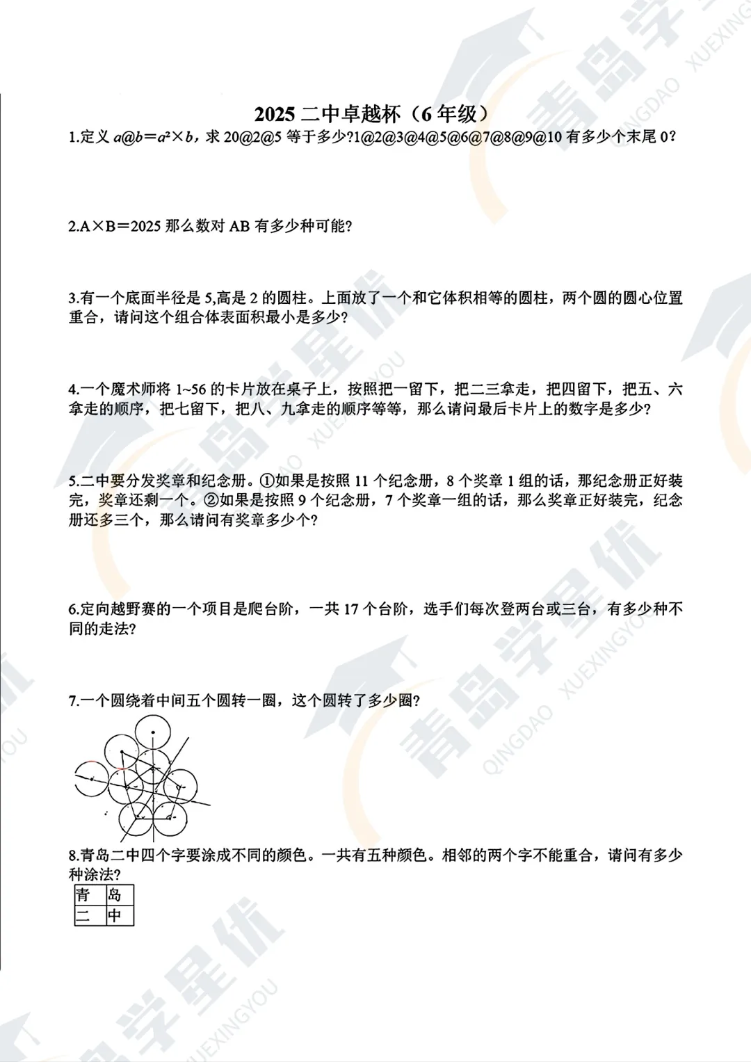本学期给大家汇总了青岛二中卓越杯考试真题,分享给大家👇
