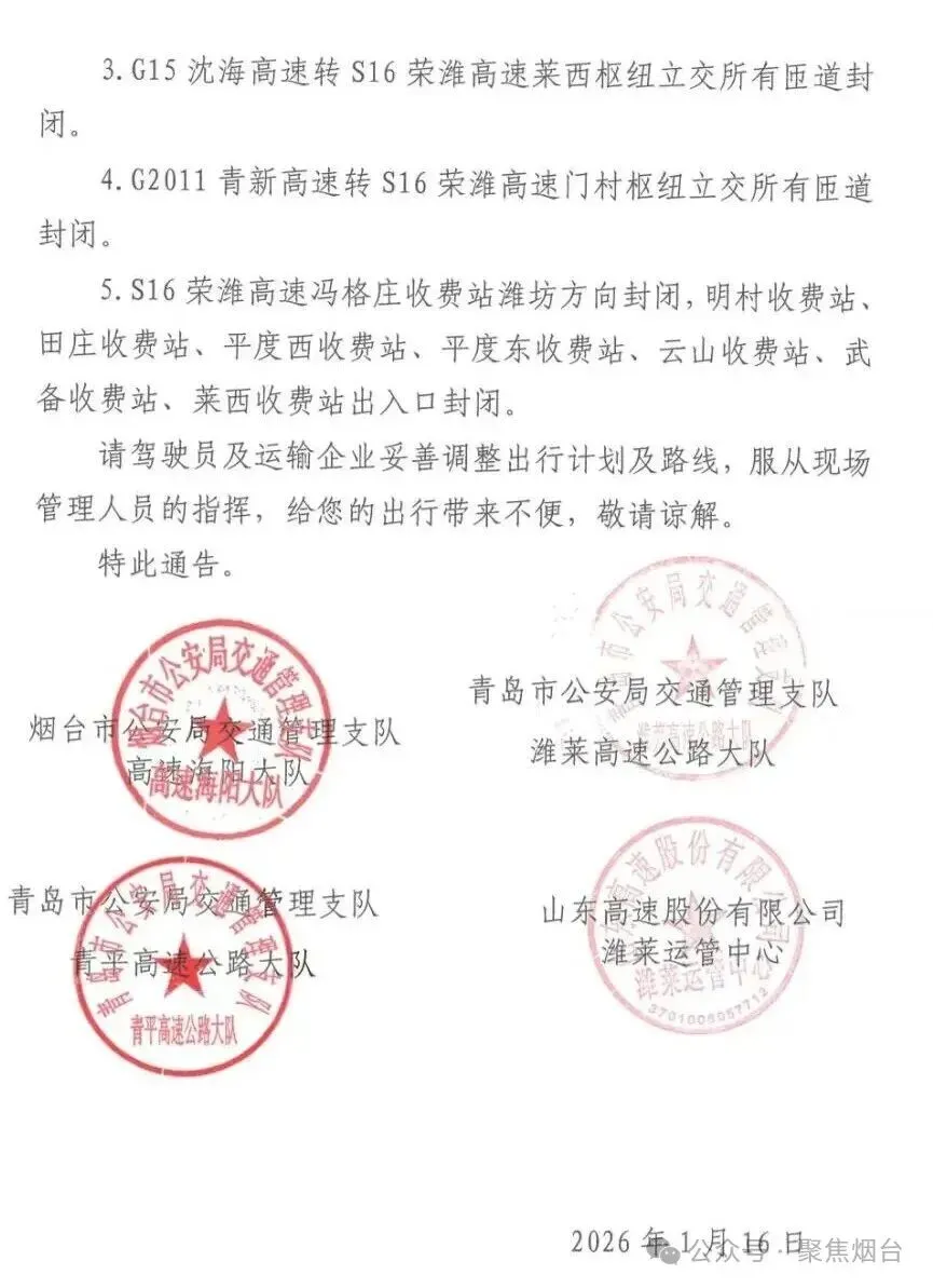 S16荣潍高速青岛、烟台部分路段