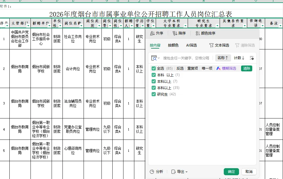 附件1:2026年度烟台市市属事业单位公开招聘工作人员岗位汇总表.xls
