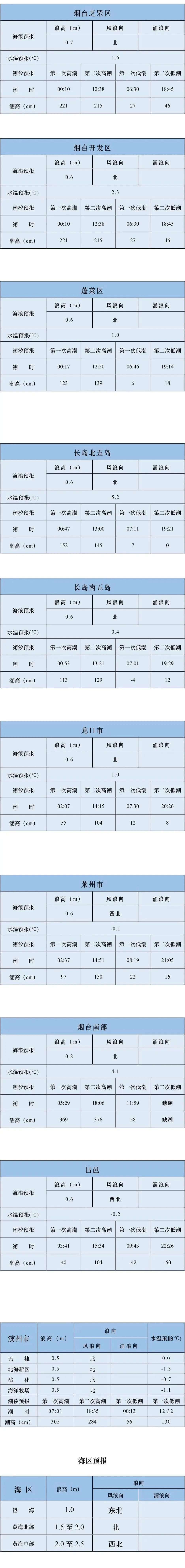 烟台国家级“和美海岛”海洋预报(1月23日8时-1月24日8时)