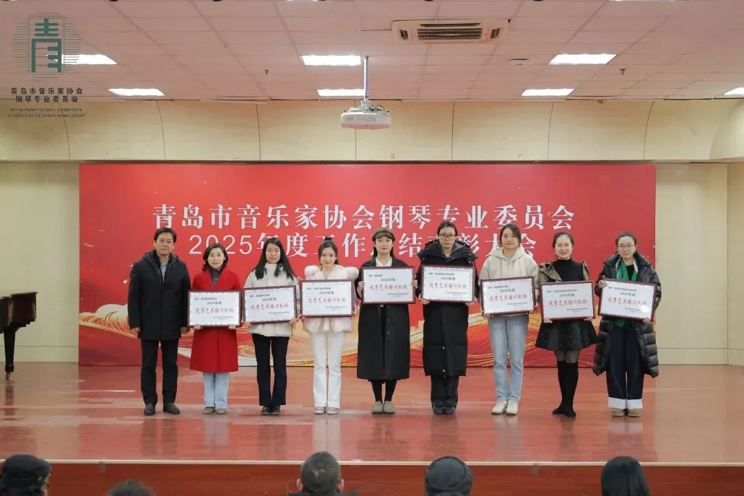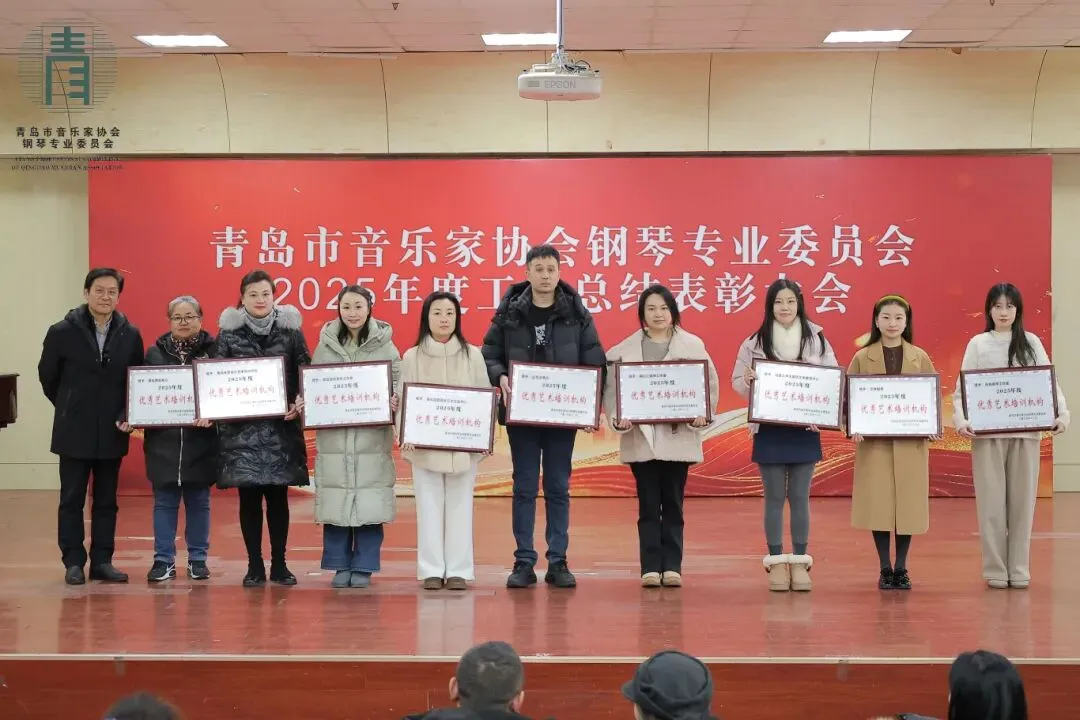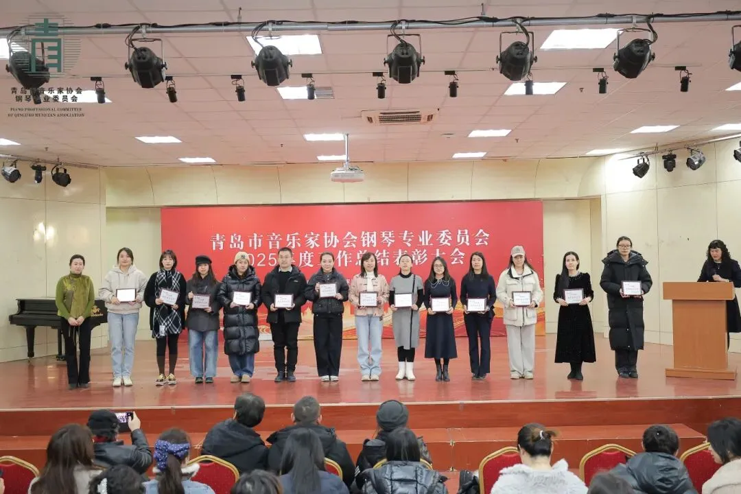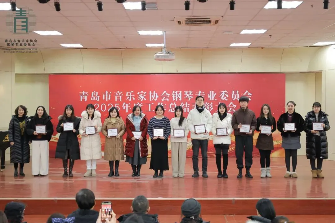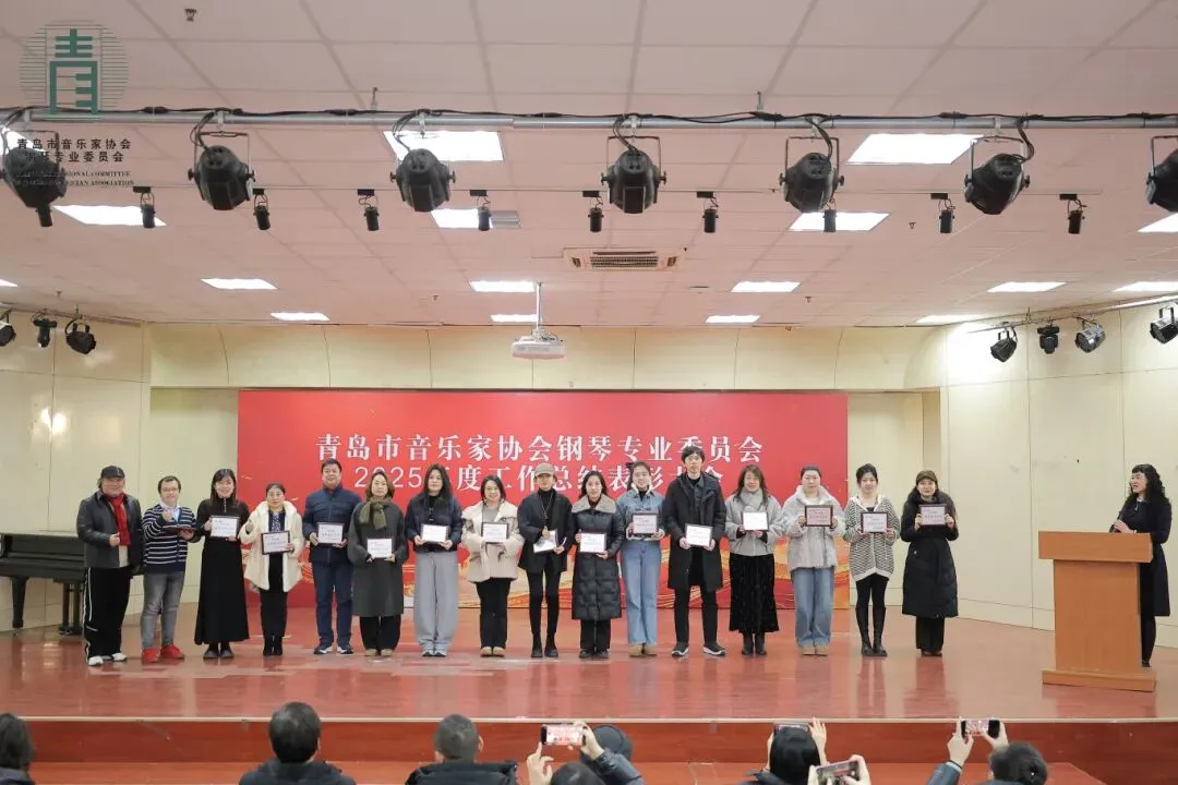每次的相聚既是回首过往,更是展望明天,表彰大会在全体来宾“再创佳绩”的洪亮心声中圆满落幕。2026年是我国“十五五”建设规划的开局之年,青岛市音乐家协会钢琴专业委员会作为岛城钢琴音乐界同仁共同的家园,将继续为大家提供更高质量的学术交流平台,为广大钢琴专业师生打造更广阔的舞台展示天地!以“海纳百川,有容乃大”的胸怀,引导广大会员精诚团结,相互尊重,携手并进,共同攀登艺术高峰。新的一年里,让我们共同奏响岛城键盘音乐文化大繁荣的华美乐章!