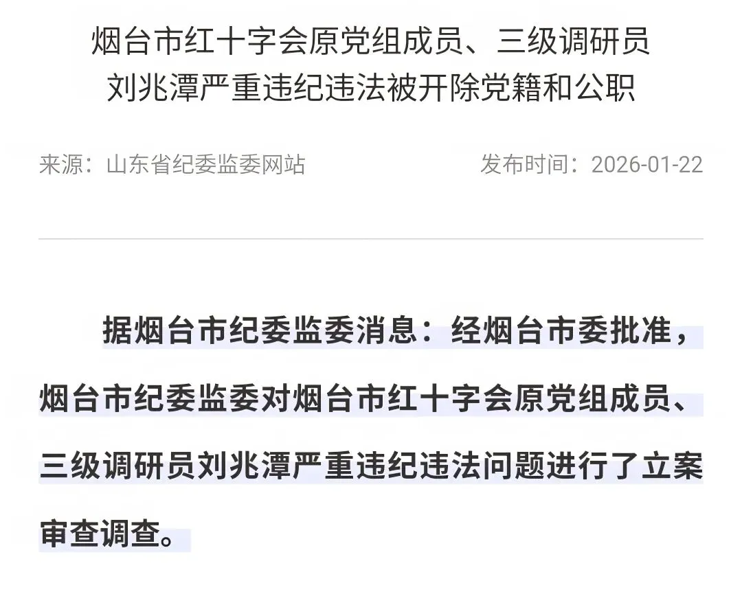 烟台市红十字会原党组成员、三级调研员刘兆潭被查。