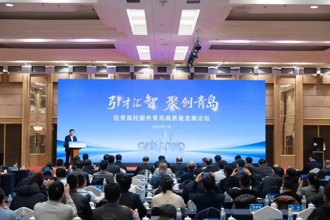 2026年1月10日,“引才汇智 聚创青岛——驻青高校服务青岛高质量发展论坛”在青岛举行。青岛市委副书记、市长任刚出席活动并致辞,校长助理王效美代表学校与驻青高校领导共同参加论坛。