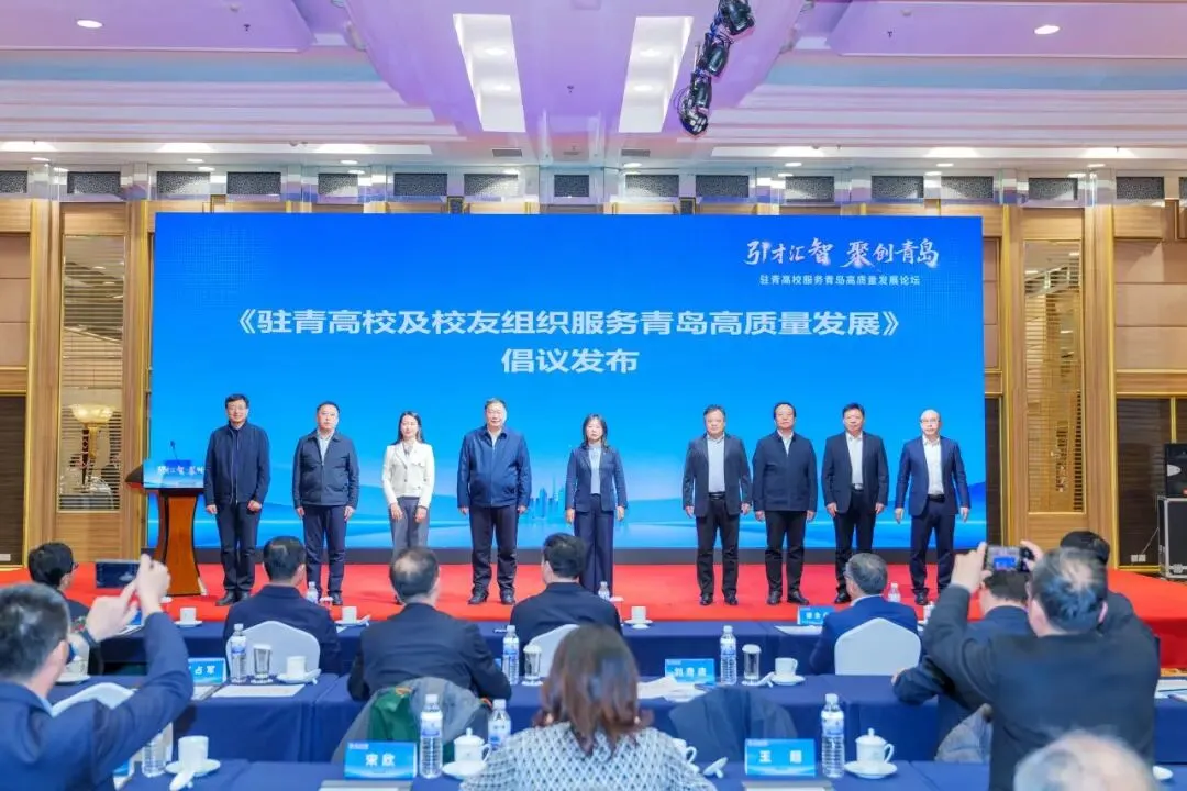 山东大学、中国海洋大学、中国石油大学(华东)等9所驻青高校代表及23个全国重点高校驻青校友组织代表共同见证《驻青高校及校友组织服务青岛高质量发展》倡议发布。倡议从深化校企合作、加速成果转化、集聚产业要素等方面明确实践路径,以集体智慧和实干担当为青岛发展赋能增效。