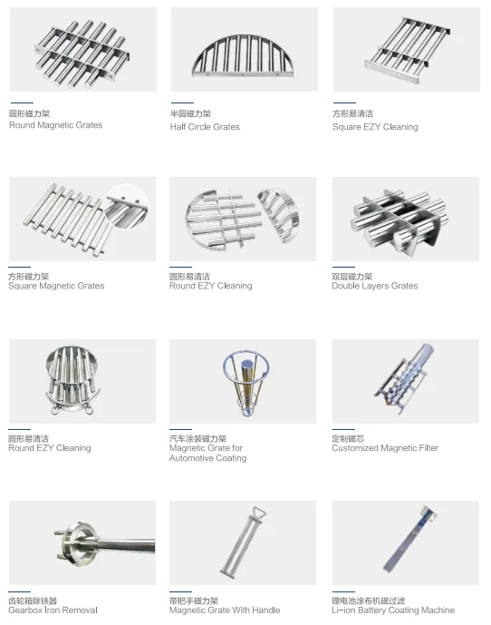 宁波金江磁业有限公司有着十多年生产制造永久强磁除铁器的经验,针对锂电池,食品,医药等行业,对永磁除铁设备,磁性过滤设备的高磁场,高表面光洁度的要求,金江磁业对磁路优化设计,磁场梯度可达到15000高斯以上,可以吸附更微小的含铁微粒。我们乐于帮助客户完成选型、设计的前期工作,不仅有磁路设计工程师,还有机械设计工程师,了解材料的性能和加工方法。采用最低成本生产,控制批量产品一致性是我们一贯的追求。