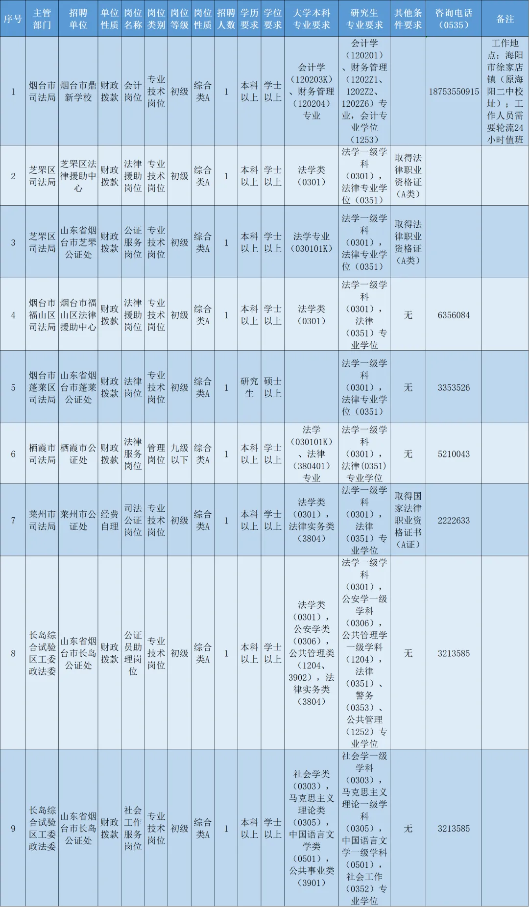 以上岗位仅涉及烟台市司法行政系统,具体岗位要求以招考公告职位表为准。