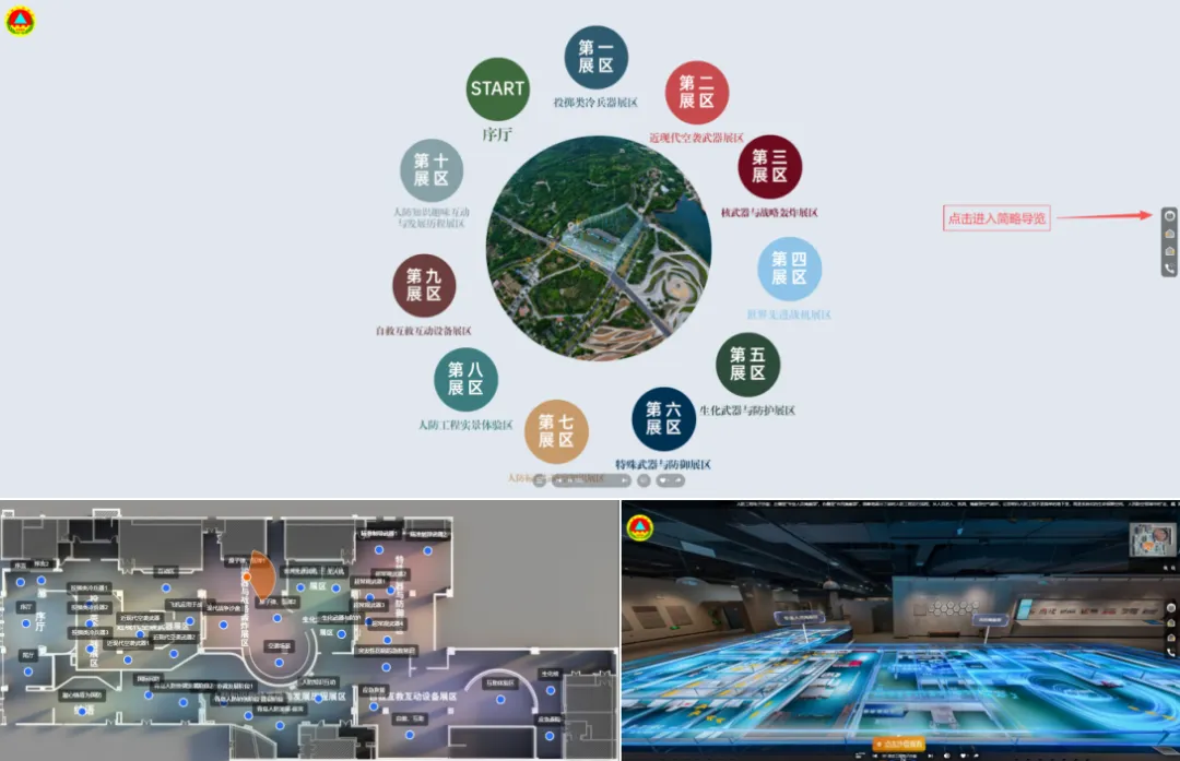 (青岛市人防宣传教育基地网上数字展馆主场景,内置交互式沙盘地图,支持一键跳转与实时定位,观众可获得全景视觉体验)