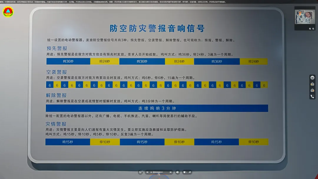 (最受欢迎的“人防警报试鸣”仿真模块,市民可点击触发不同警报声,学习对应的应急行动指令)