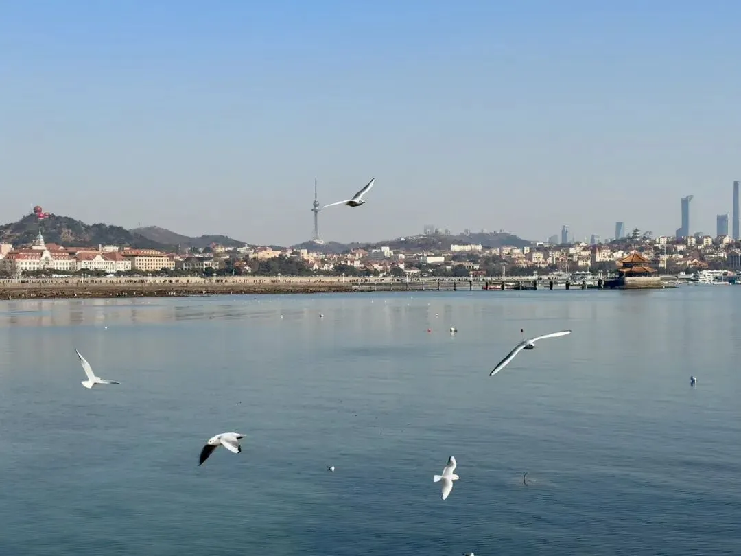 李慰农公园、西陵峡路,左手边是栈桥,右手边是海上皇宫,步行几十米就能去看海,冬天好多海鸥。