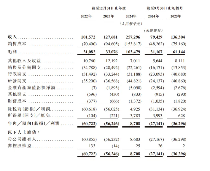 公开资料显示,极视角研发投入长期处于高位。2022年至2024年,公司研发开支占各期经营成本的总额达34.7%、37.2%、45.6%;2025年前三季度占比接近半成,达46.2%。