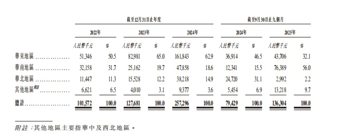 这一点从收入来源地域分布也得到了印证。数据显示,极视角2023年华东地区收入占比达65%,到了2025年前三季度,该占比骤降至32.1%。说明其可能并非建立了广泛稳定的全国网络,业务可能存在过度依赖特定区域的个别大项目的情况。