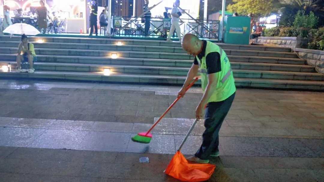 手持扫帚、簸箕的环卫工人们,是啤酒节现场另一道不可或缺的风景线。他们始终低头忙碌在各个市集摊位之间,弯腰清扫着地面的垃圾,不放过任何一个卫生死角。从散落的啤酒瓶碎片到食物残渣,在他们的辛勤劳作下,现场始终保持着干净、整洁、有序,让市民和游客能在舒适的环境中尽情狂欢。