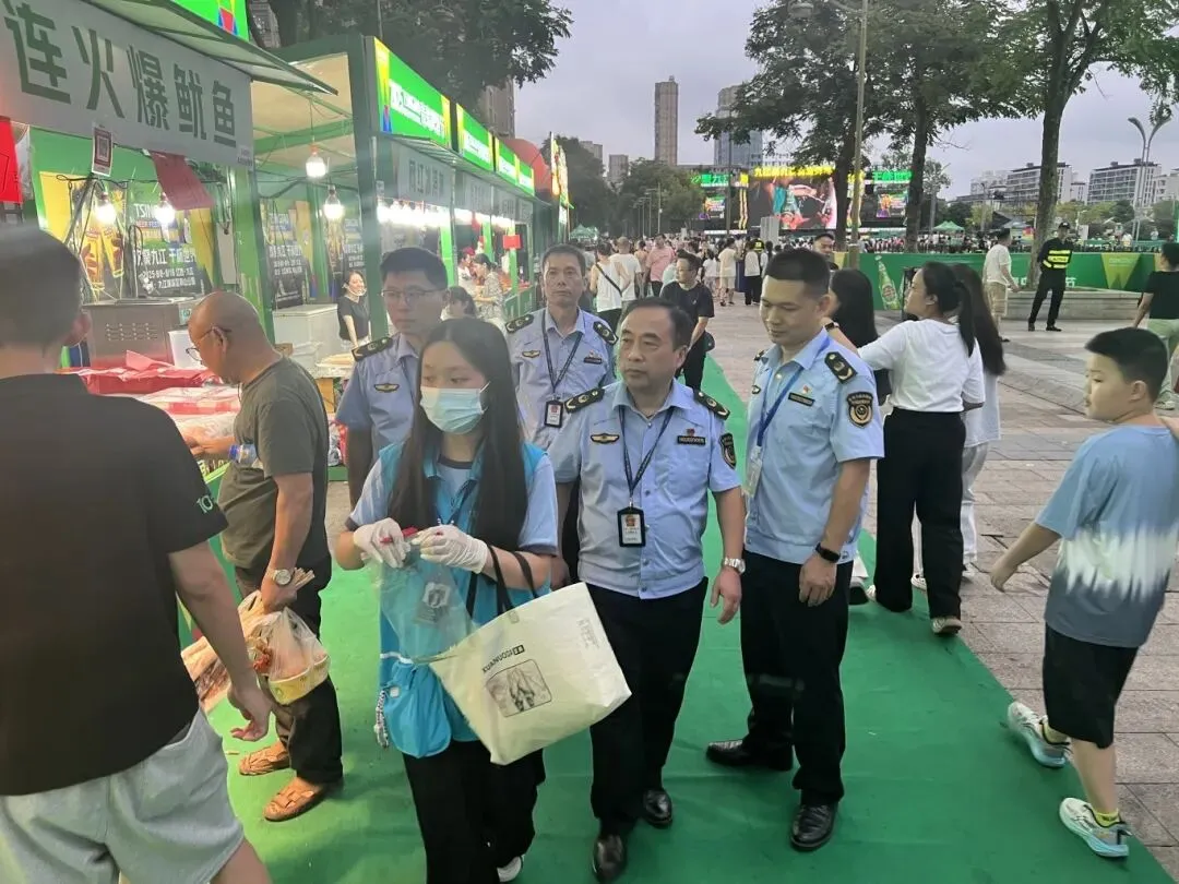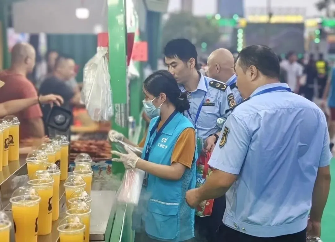 市监部门的工作人员也活跃在美食街区,他们开展“你点我检” 活动,市民点啥就查啥,从食材到饮品,细致检测毫不含糊。他们用严谨的态度守护着大家的舌尖安全,让每一口美食、每一杯啤酒都吃得放心、喝得安心。