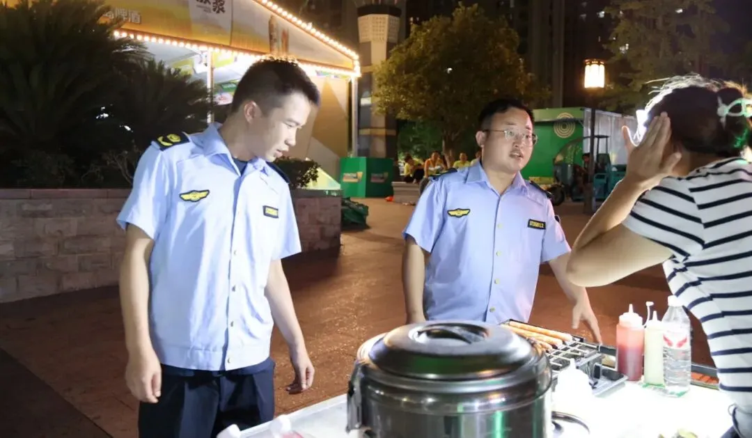 城管部门的工作人员们在摊位间来回巡查,耐心引导商户规范经营,避免占道摆放影响通行。从摊位的陈列到临时设施的搭建,他们细致把控每个细节,让热闹的现场既充满烟火气,又井然有序。