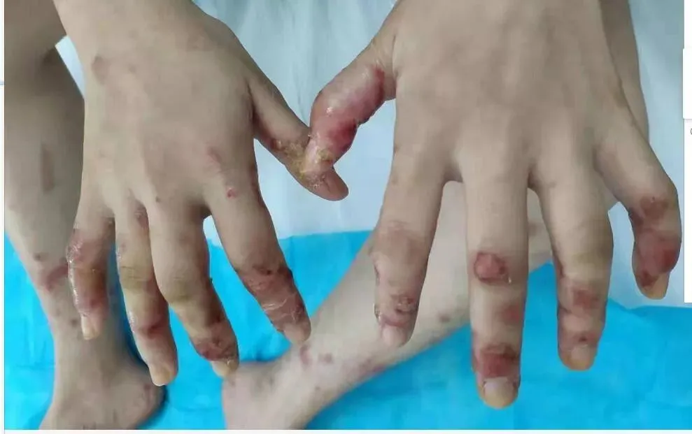当时,小林立即到附近医院开了一些口服的抗过敏药,但吃药后症状仍然没有好转,更可怕的是疱疹从双手蔓延至双腿,部分疱疹已被小林抓破并有渗液了。