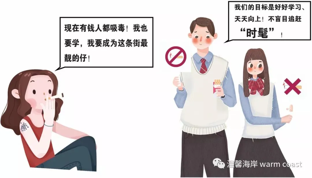 毒贩们鼓吹“吸毒时髦的,是有钱人的标志”这样极其荒唐的错误观念。而青少年关注潮流、追崇时尚,往往会被这种错误观念所左右。因此作为新时期的青少年在湖流面前要分清是非对错,重视培养自身良好的行为习惯,不要盲从。