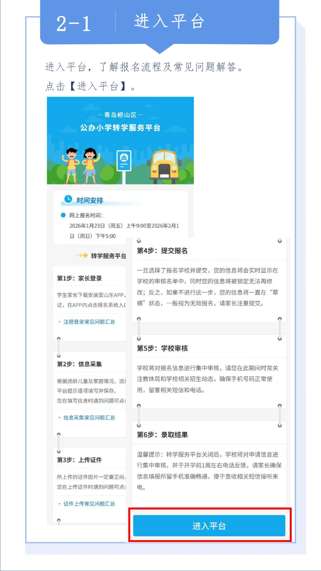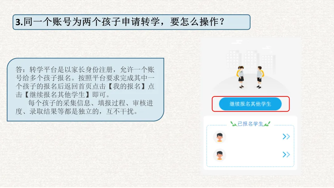 2.请家长如实填报信息、上传证明材料。如提供虚假材料,一经查实,取消转学资格,同时将提供虚假材料的监护人作为失信人纳入国家征信体系“黑名单”。