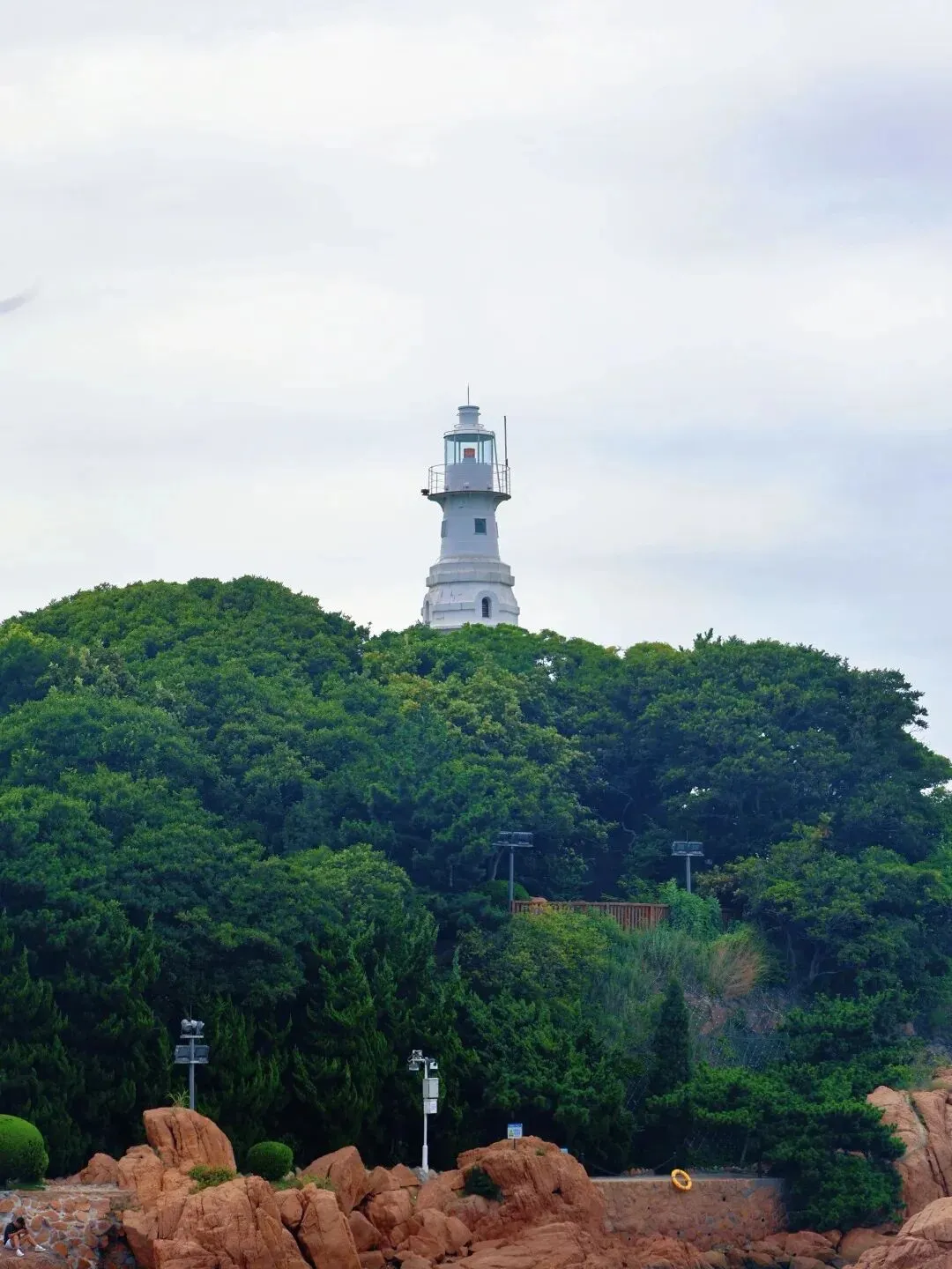 岛上最显眼的建筑,是那座矗立于最高处的白色八角形灯塔。它由德国人于1900年建造,1915年启用,至今仍是船舶进出胶州湾的重要航标。