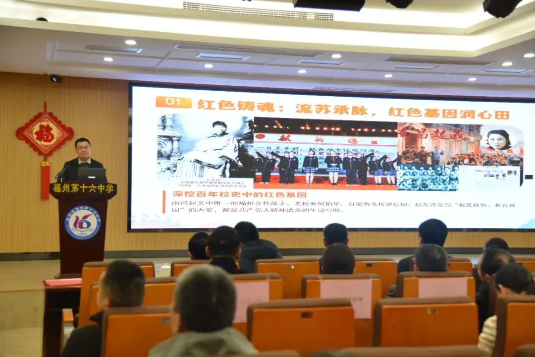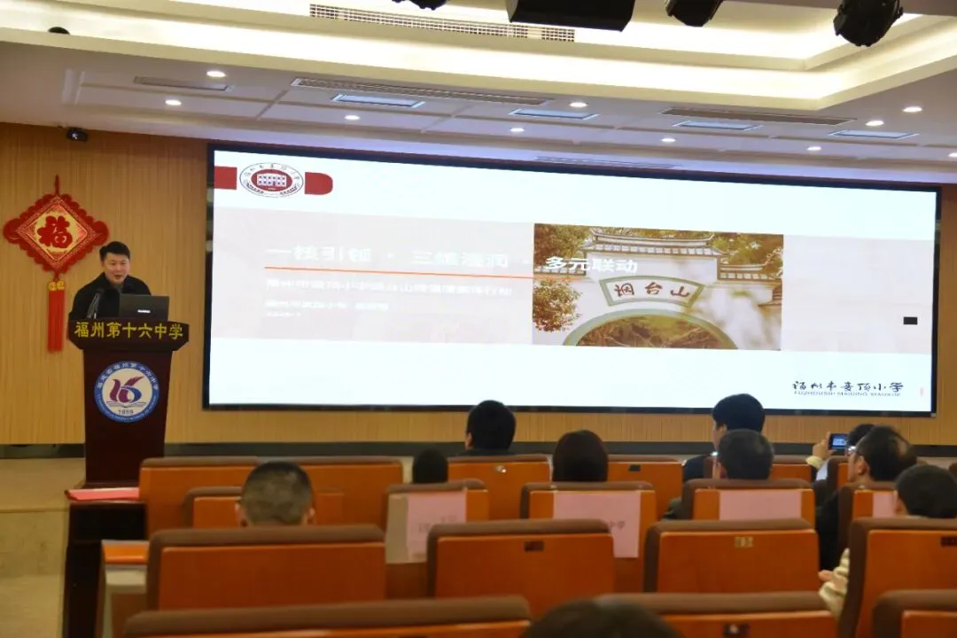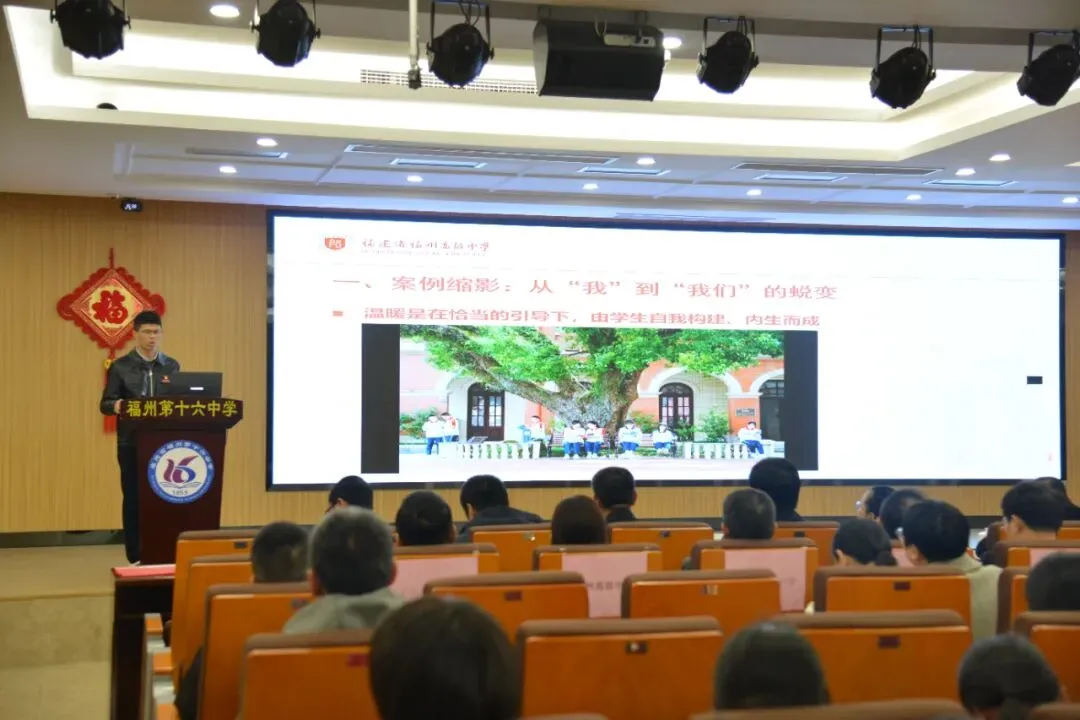 福州第十六中学德育处主任林斌系统介绍了学校以“三航”路径为引领,推动红色铸魂、五育赋能与家校协同深度融合的实践体系。