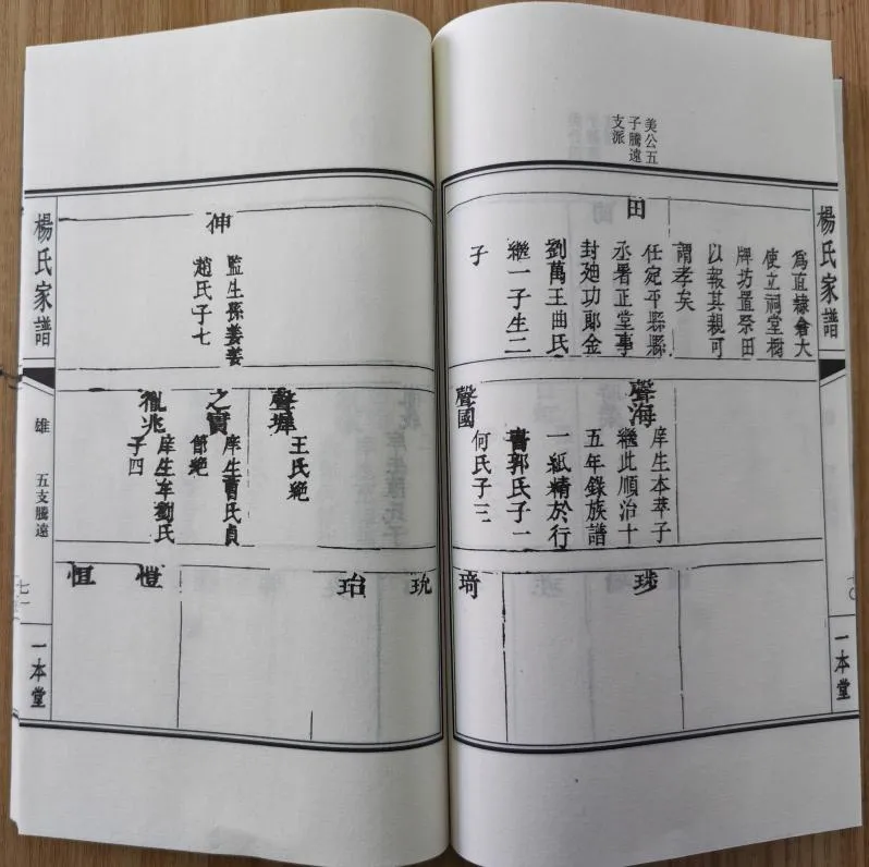 该谱一修为明嘉靖九年(1530)杨顺修谱,二修为明万历三十一年(1603)杨雾修谱,三修为清顺治十五年(1658)杨声海修谱,四修为清乾隆三十五年(1770)杨秉彜修谱,五修为2018年杨明星、杨连先等主编。