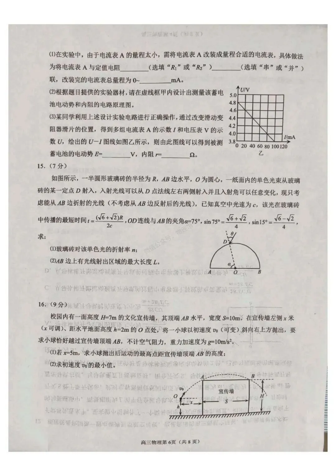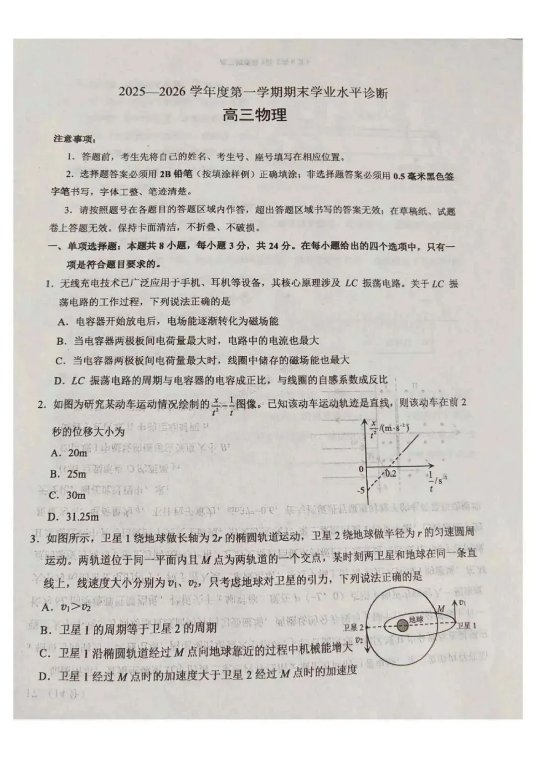 山东省烟台市2026届高三上学期期末学业质量水平诊断物理含答案