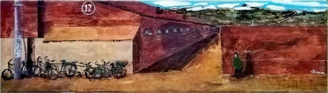 张善勇 《家属院17-1号》56x16cm 板上坦培拉