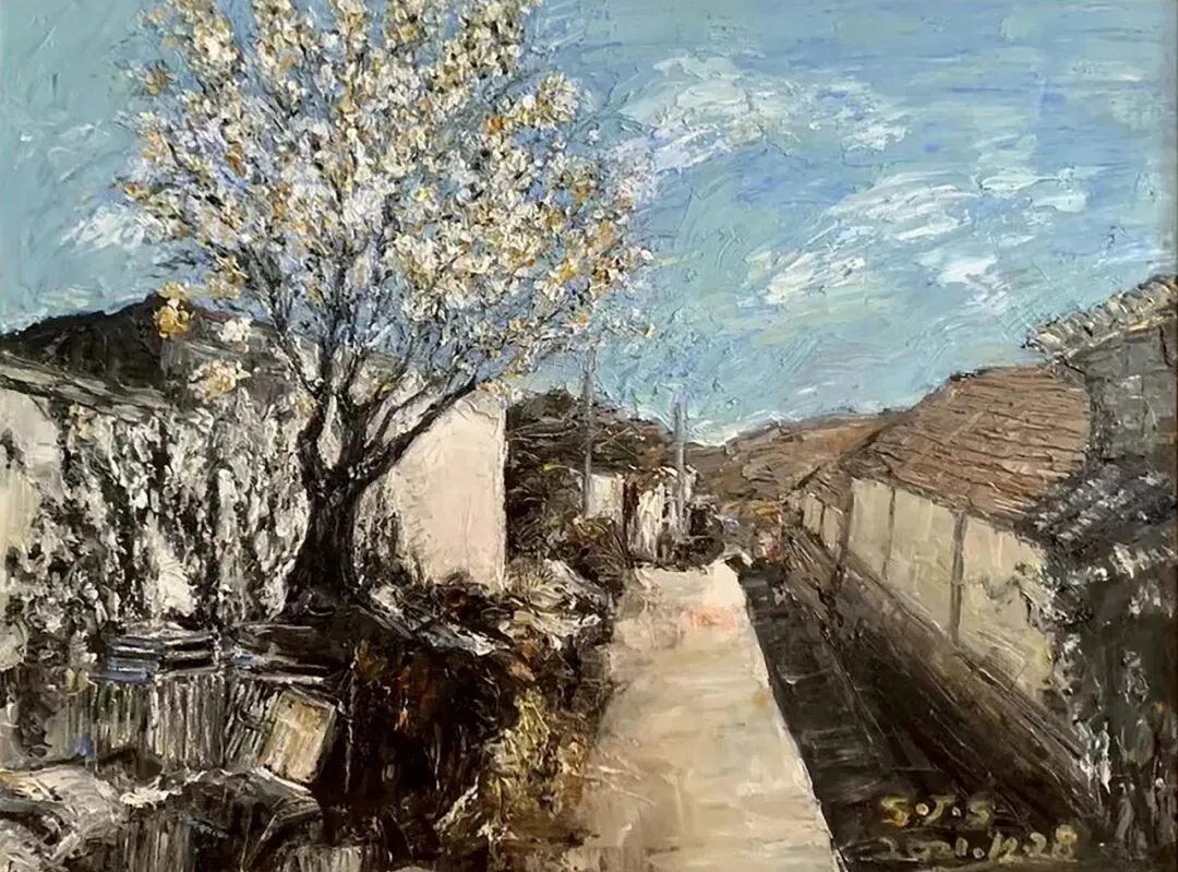 段会壮 《老屋印记》100x100cm 2025年