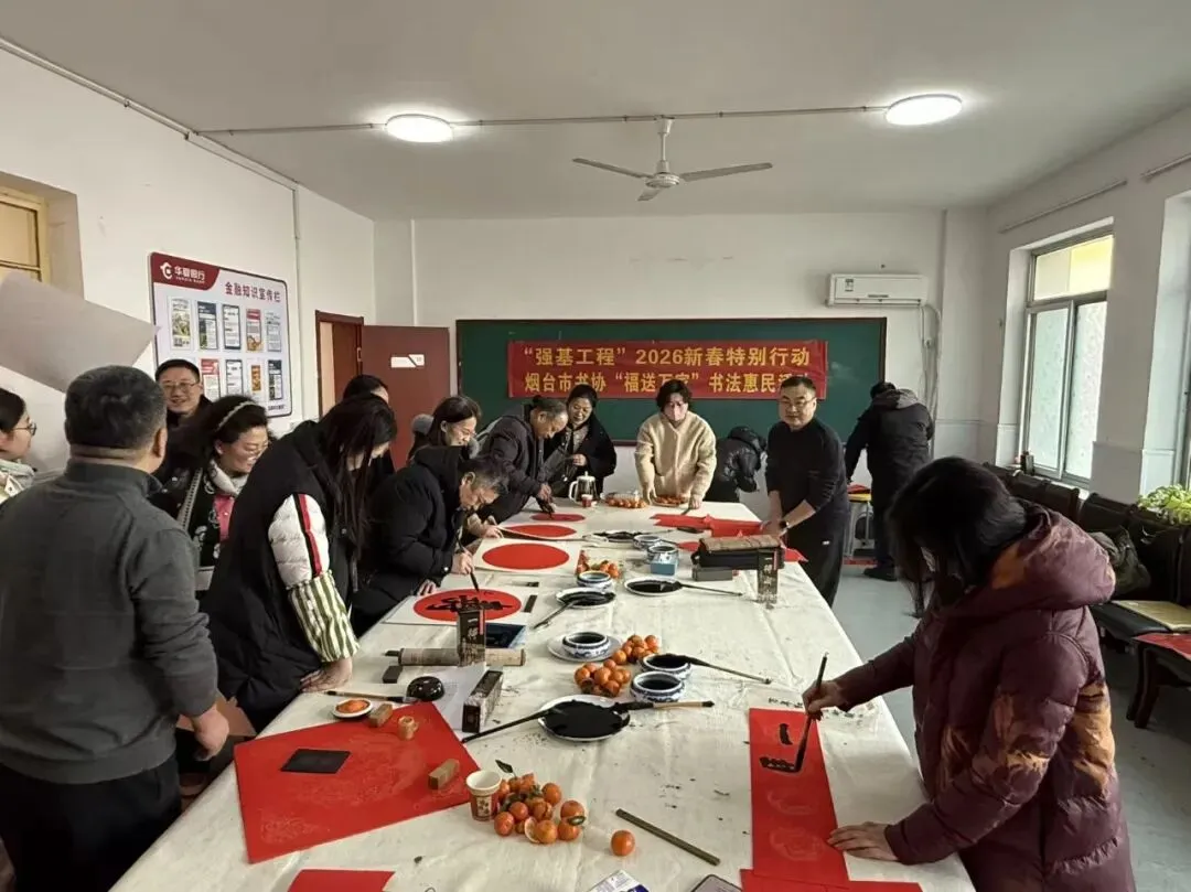 1月22日,烟台市书协组织书法家志愿者小分队,由烟台市书法家协会主席姜玉松带队,副主席耿大军、宫庆全、高毅,副秘书长张则华,理事赵少阳一行6人来到芝罘区南洪社区,举行“福送万家”书法惠民活动。