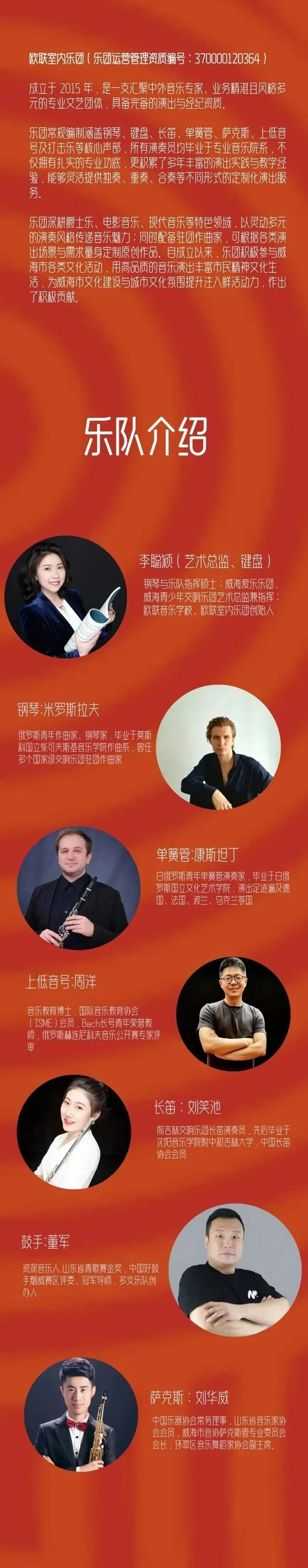 本次音乐会精心选取多首跨越时代与风格的中外经典,以爵士乐为笔,重新描绘熟悉的旋律图景。您将听到: