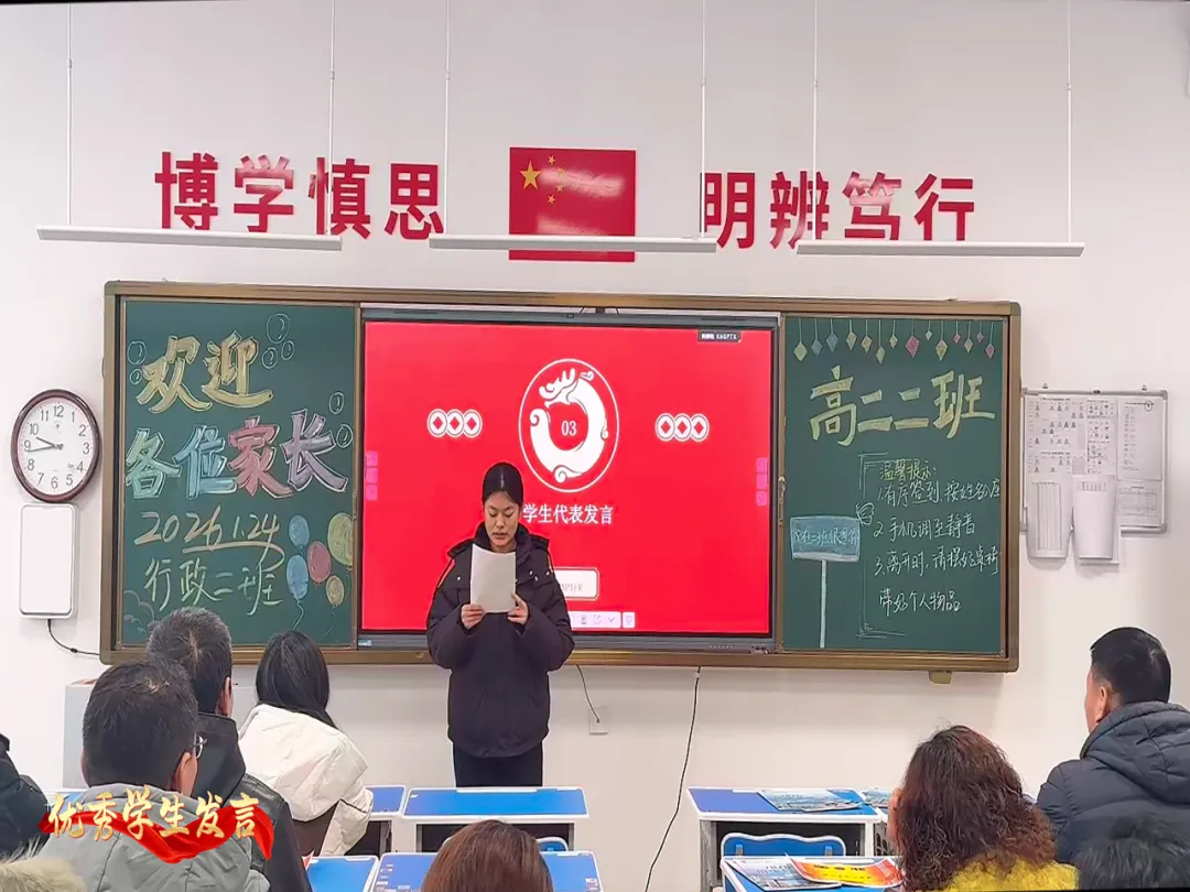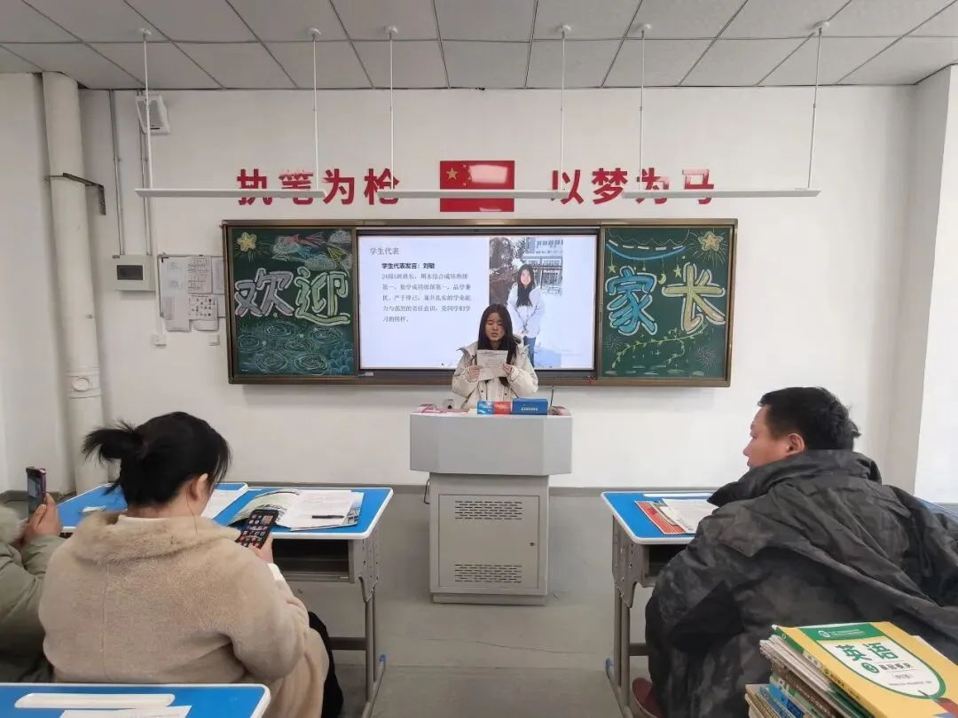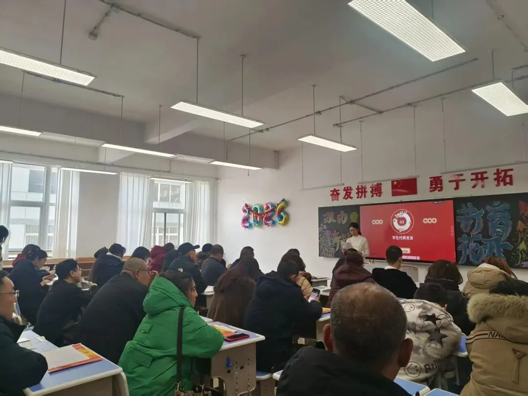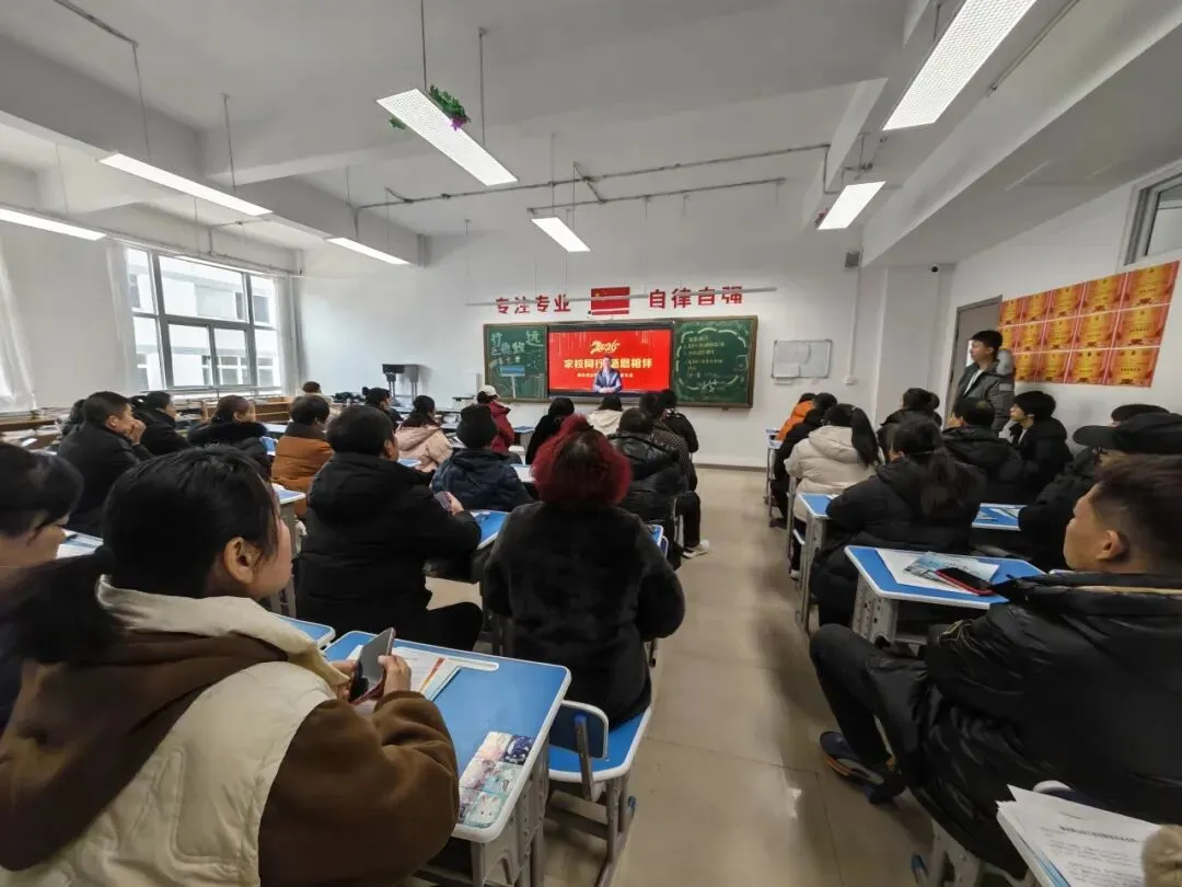 孙雨书记讲话结束后,各班主任主持本班家长会。班主任们通过精心准备的多媒体课件,向家长全面汇报了本学期班级整体情况、学生表现、学业成绩以及班级管理特色。随后,文化课与专业课教师依次进班发言,结合学科特点,详细分析了学生的学习状态、优势不足,并提出了具有针对性的寒假学习建议和下学期教学规划。